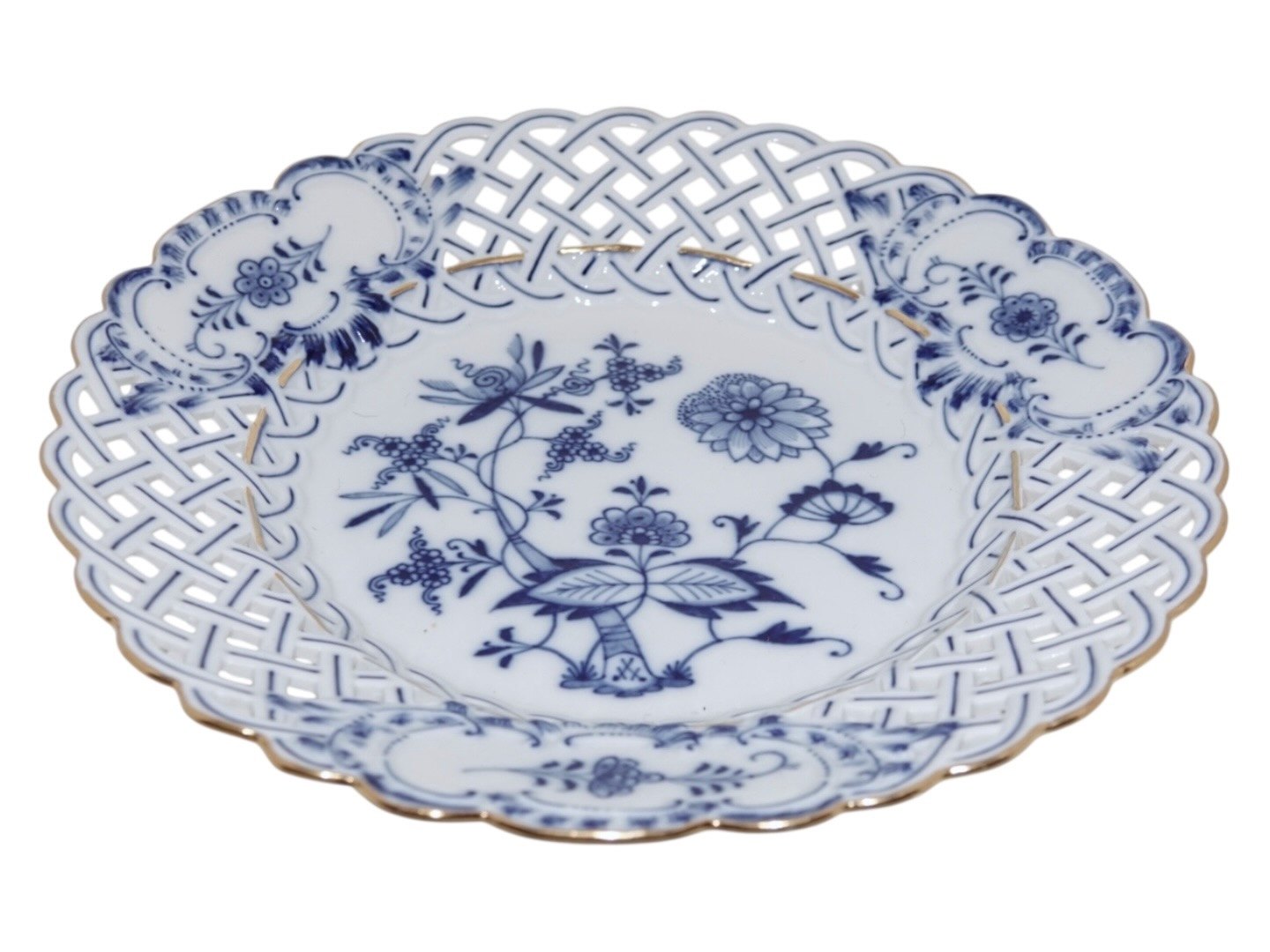 Meissen Tyskland, Blue Onion tallerken med dobbeltblonde og guldkant.Diameter 23,5 cm.