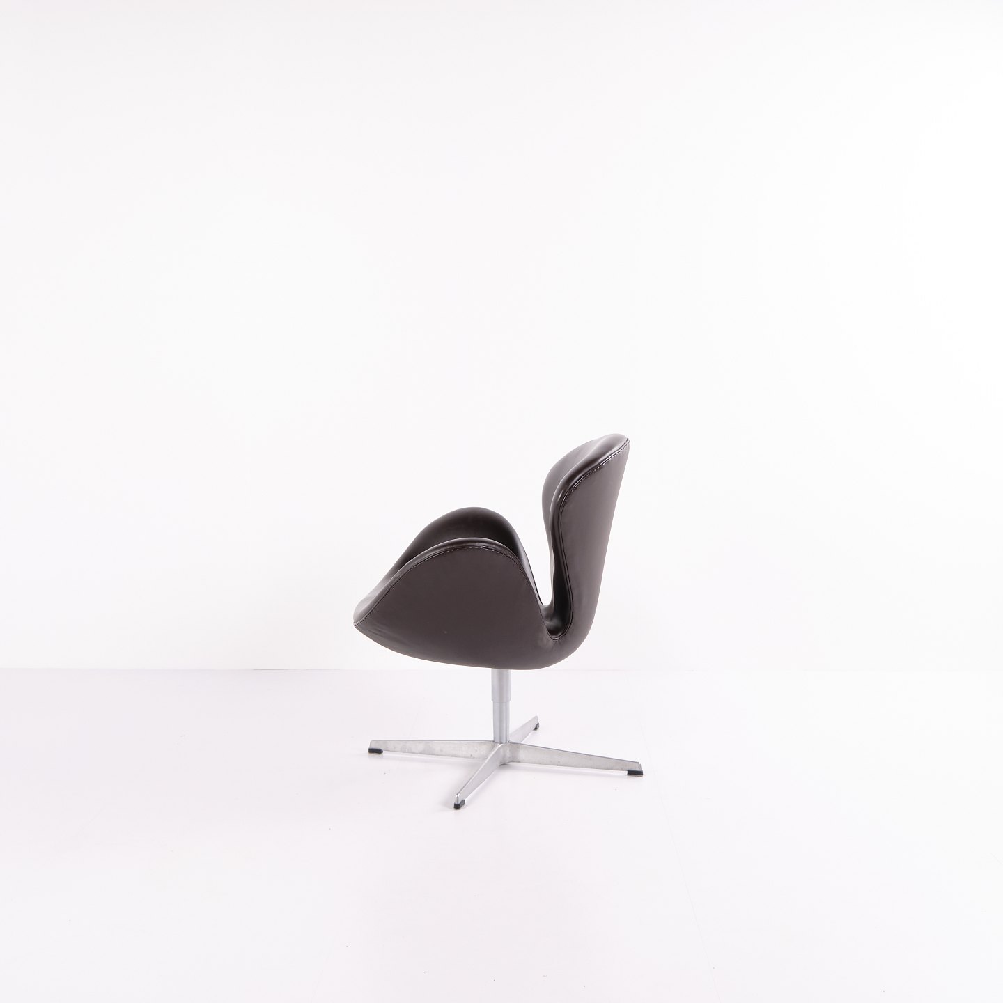 Svanen lænestol model 3320 af Arne Jacobsen for Fritz Hansen. Brunt læder. Produceret 2007. Ikonisk dansk designklassiker.— Designer: Arne Jacobsen