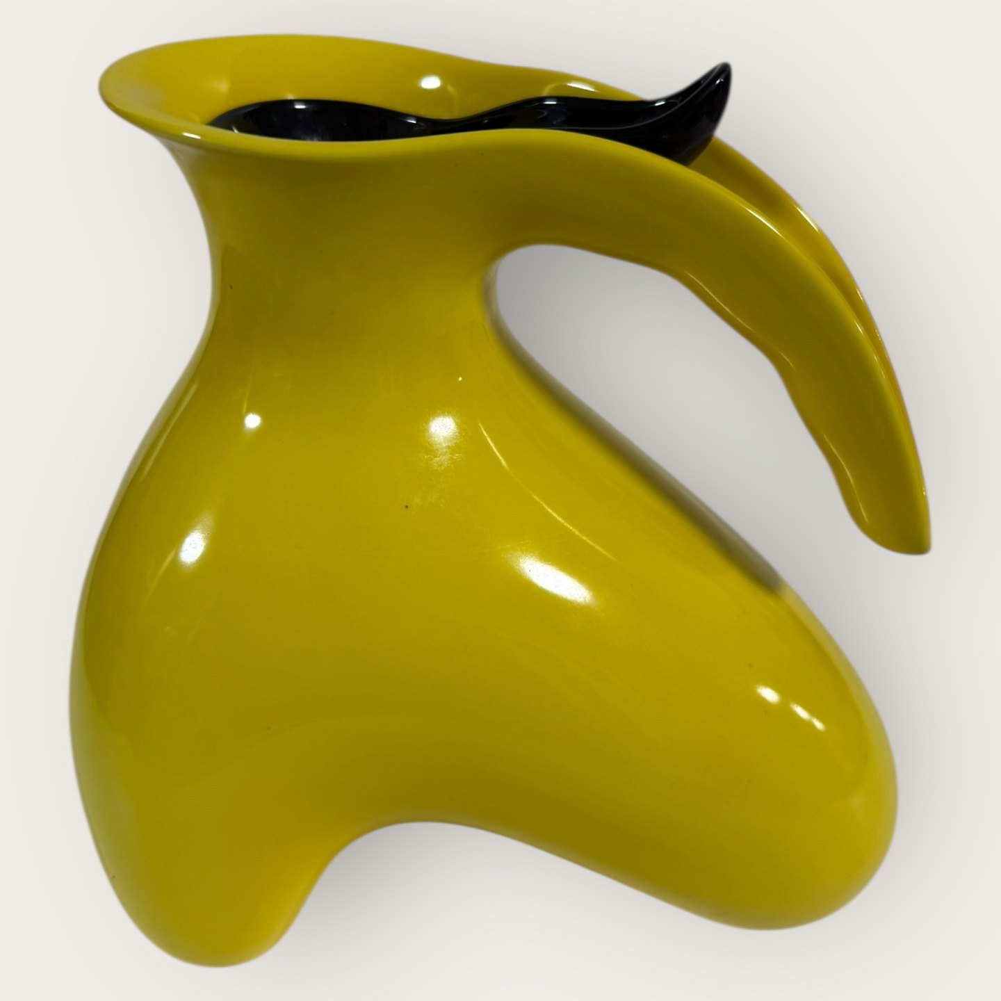 Royal Copenhagen, Fajance, gul kande med sort låg, # 143, Design Ole Jensen, låget fungerer også som måleske, Mål: ca. 20x19x15cm, 1. sortering *Perfekt stand*Lager: 1