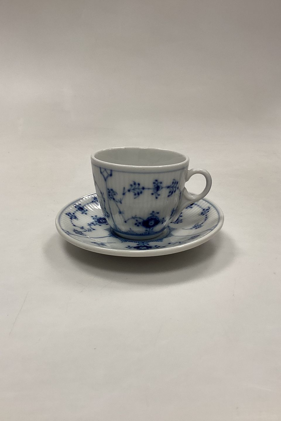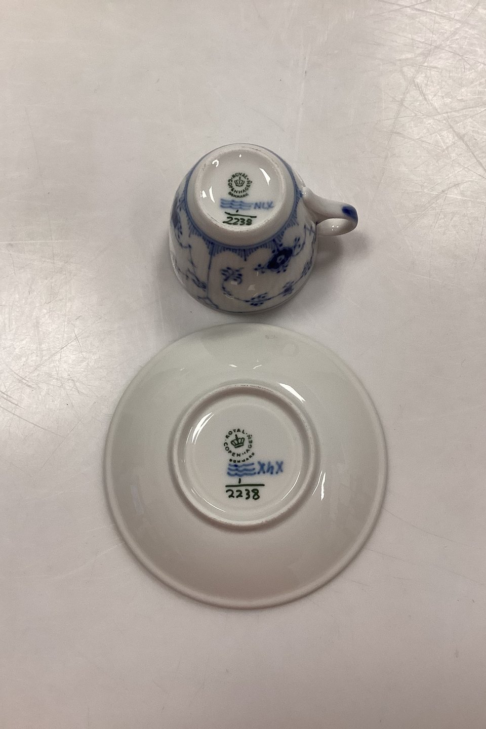 Royal Copenhagen Musselmalet Riflet Hotel Kaffekop med underkop No. 2238.Mål: Kop 6,2 cm x 7,5 cm dia. / 2,44 in. x 2,95 in. Underkop 13,5 cm / 5,31 in.