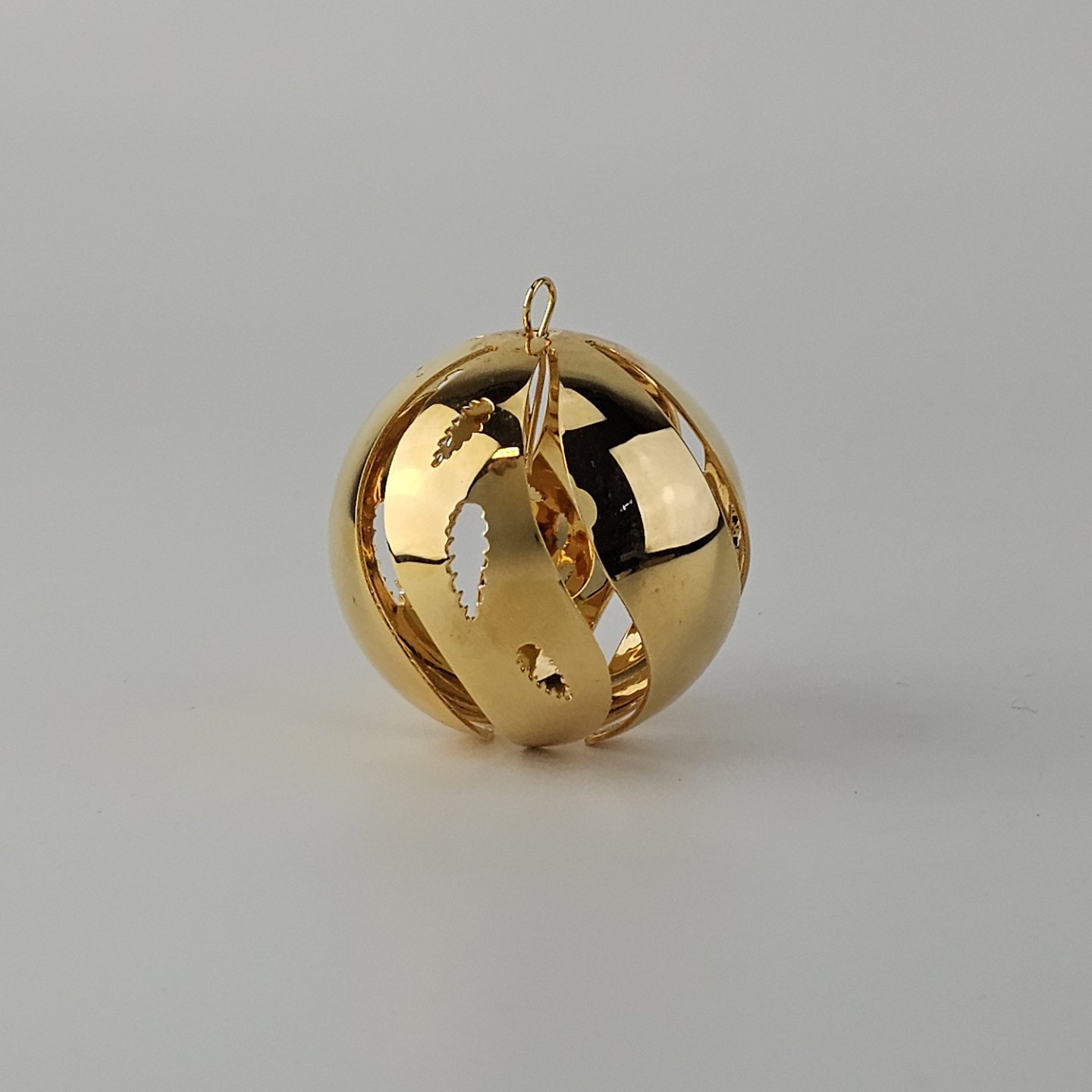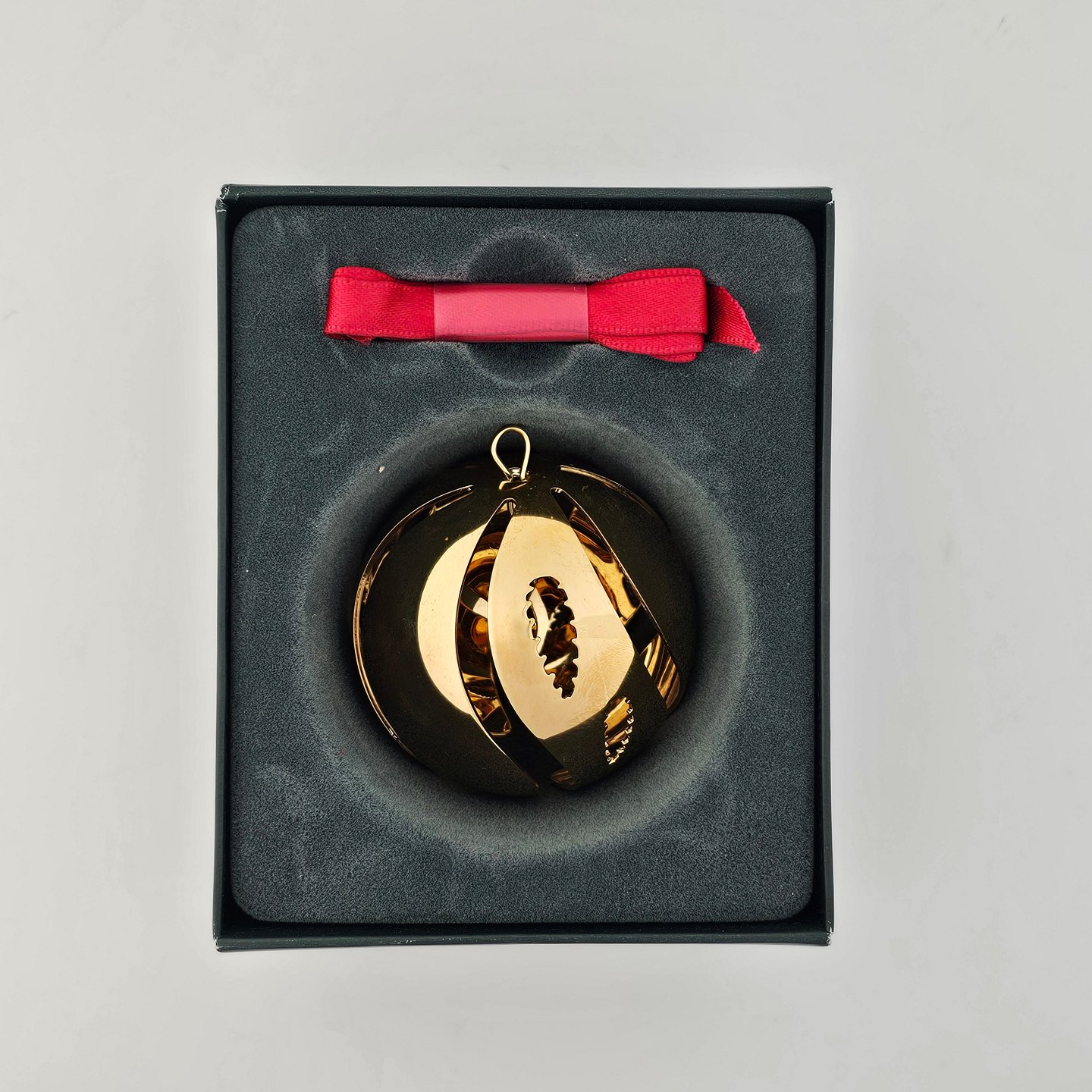 Julekugle med granmotiv 2005 i messing forgyldt med 24 karat guld fra serien Christmas ClassicsI original kasse