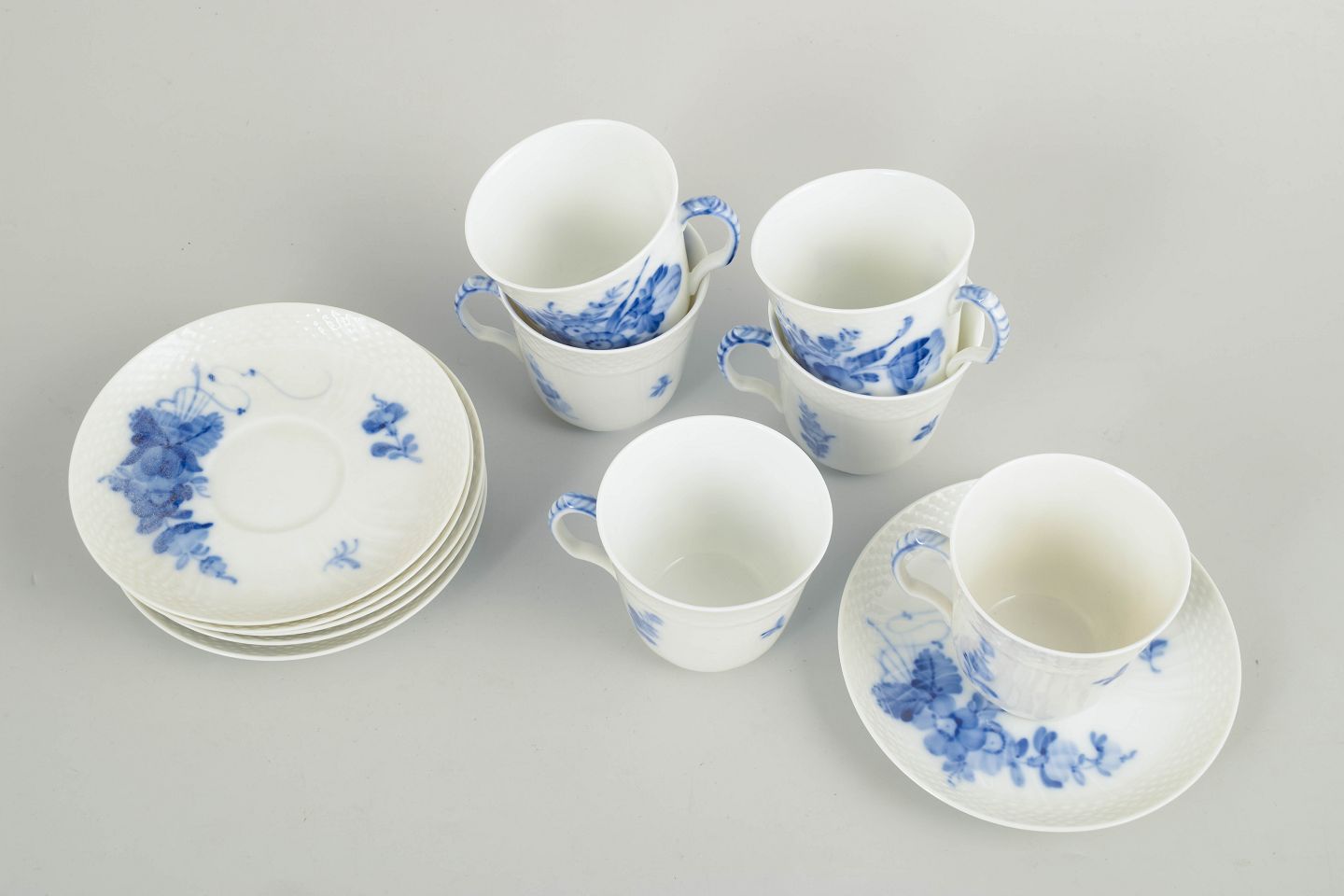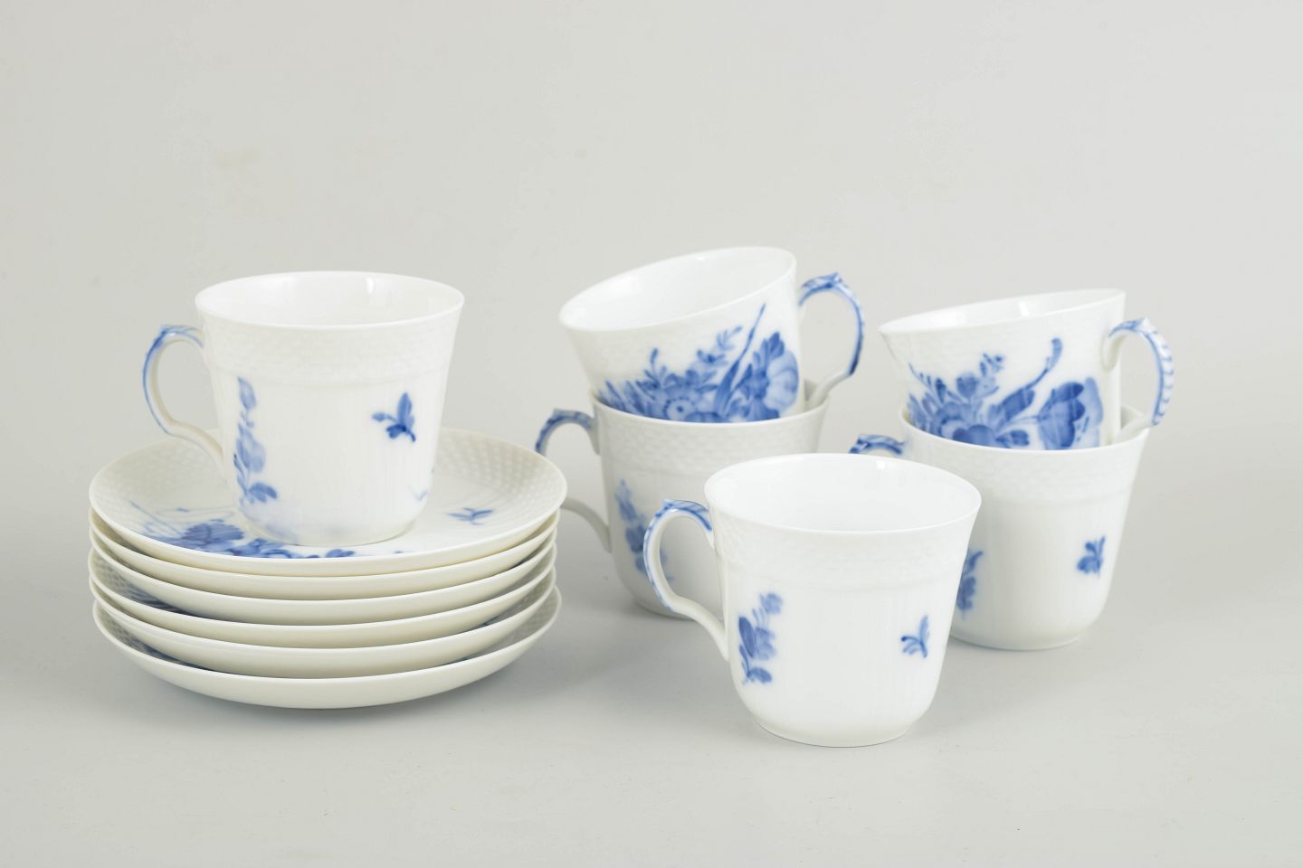 Royal Copenhagen, blå blomst flettet kaffekopper, sæt af 6.Sæt bestående af seks kaffekopper med tilhørende underkopper i glaseret porcelæn med håndmalet underglasurdekoration i det klassiske blå blomst flettede mønster. Model 10/1546.