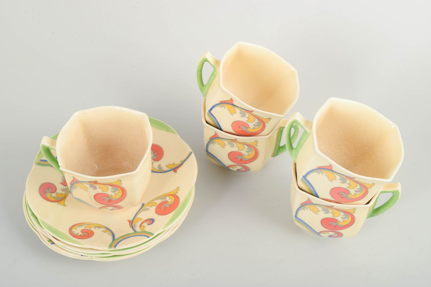 Clarice Cliff for Royal Doulton, sæt på 5 kaffekopper med tilhørende underkopper.