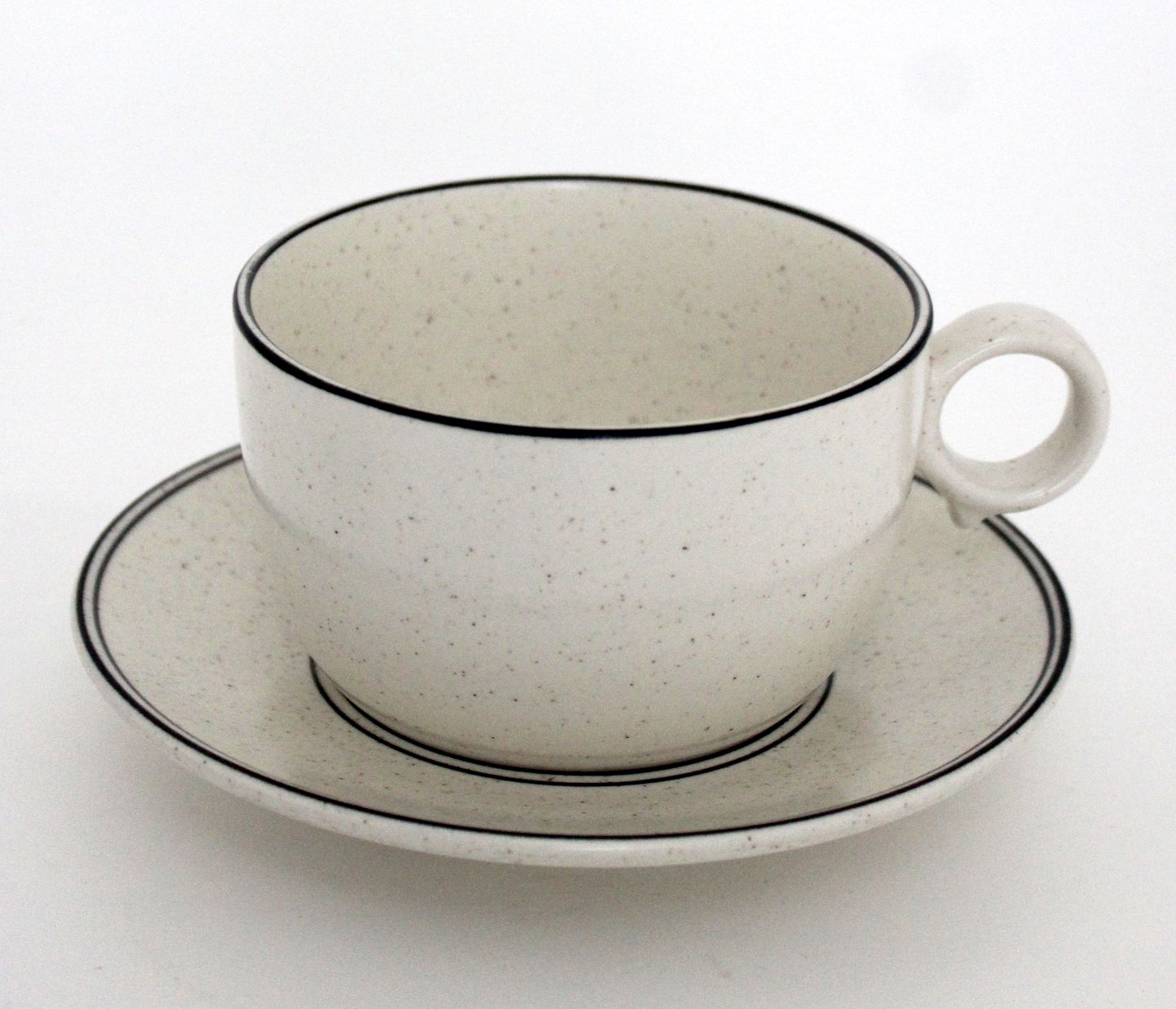 Gustavsberg senere Arabia, Birka, Tekop med underkop. Designet af Stig Lindberg. Produceret i perioden 1973-1987. Mærke: Gustavsberg Stengods VDN S555 Sweden, owen, table, dishwater. Mærke: Arabia Finland.Tekop. Højde 6,5 cm. Diameter 10 cm. Underkop diameter 15 cm. Pris: 150 kr. stk. Lager: 4