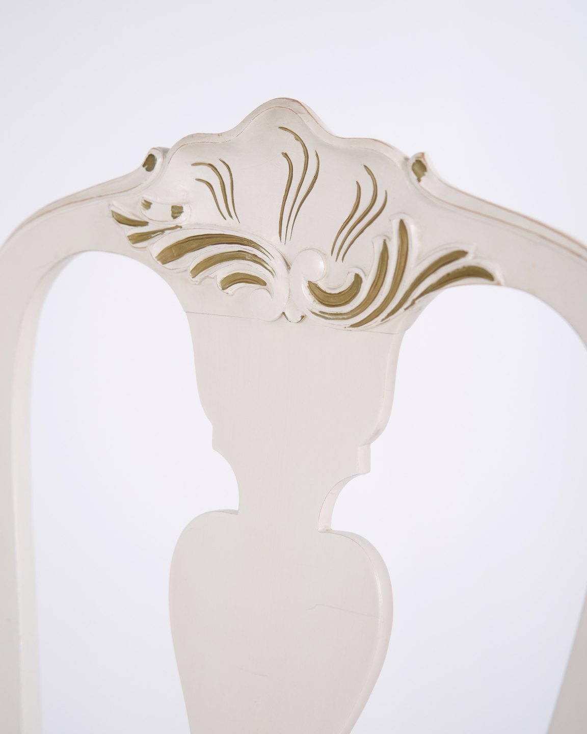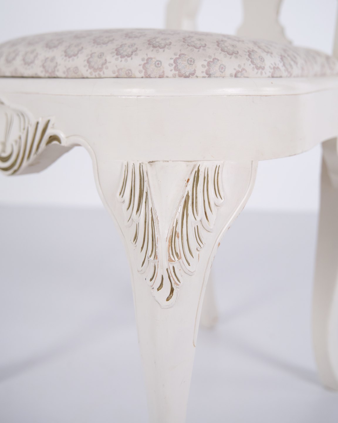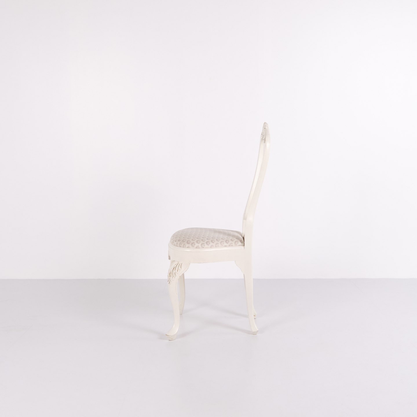 Antikke spisebordsstole i ny rokoko stil fra 1920’erne. Sæt af 6 hvidmalede stole med dekorative detaljer.— Stil: Ny rokoko
