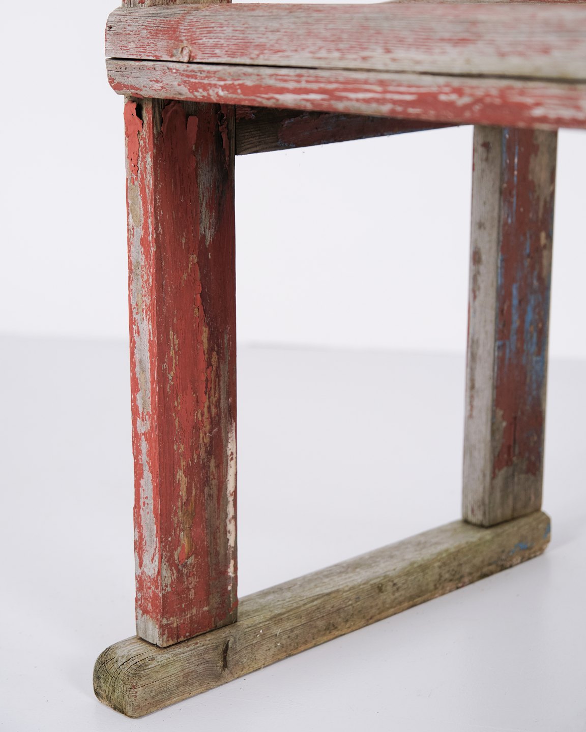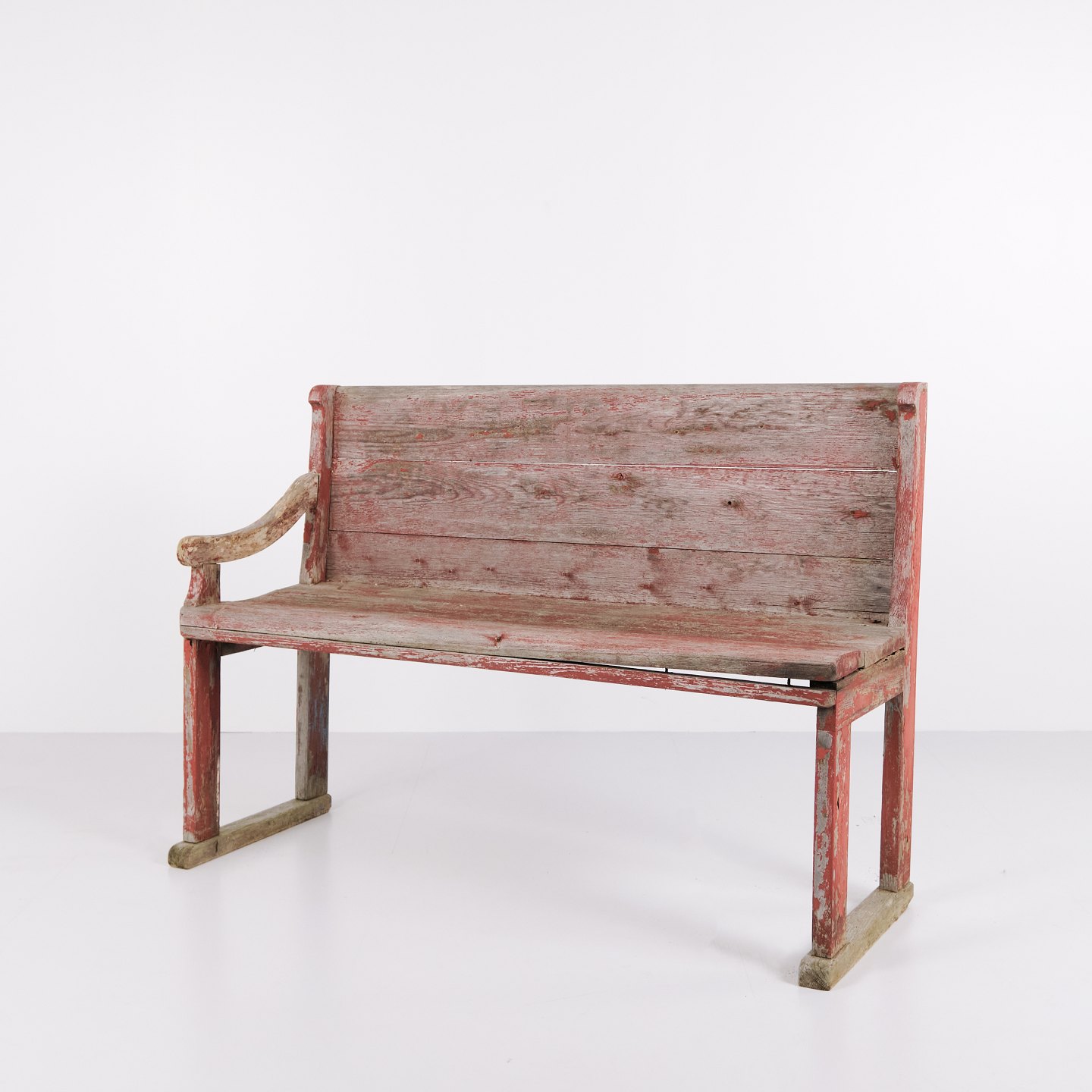 Antik bænk fra 1860’erne i original rødmalet fyrretræ. Antik rødmalet bænk 1800-tallet.— Materiale: Fyrretræ