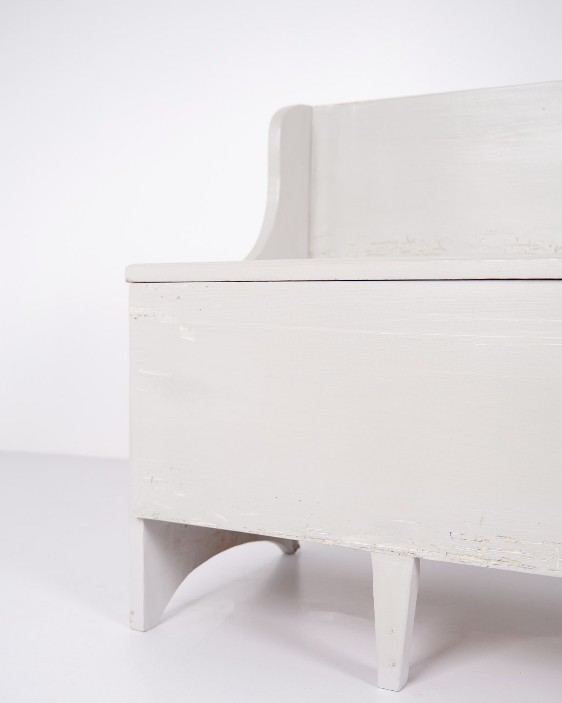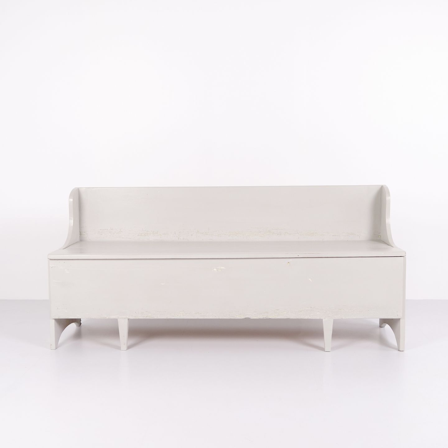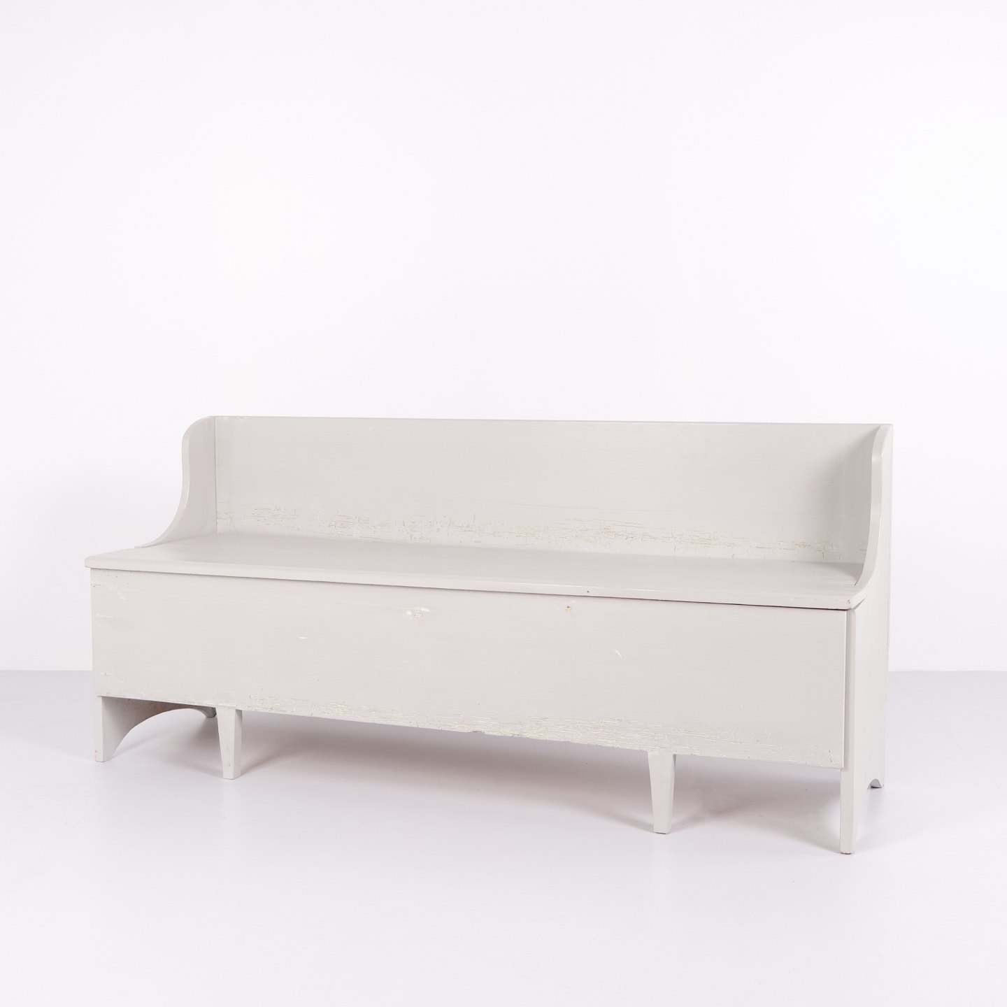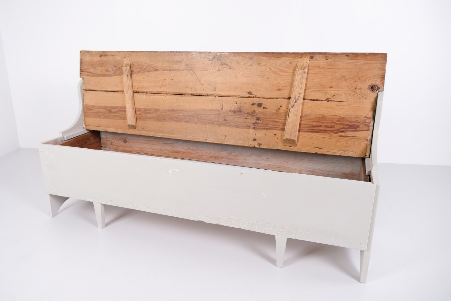 Antik slagbænk 1890’erne i gråmalet fyrretræ med opbevaring. Antik opbevaringsbænk 1800-tallet.— Type: Slagbænk med opbevaring