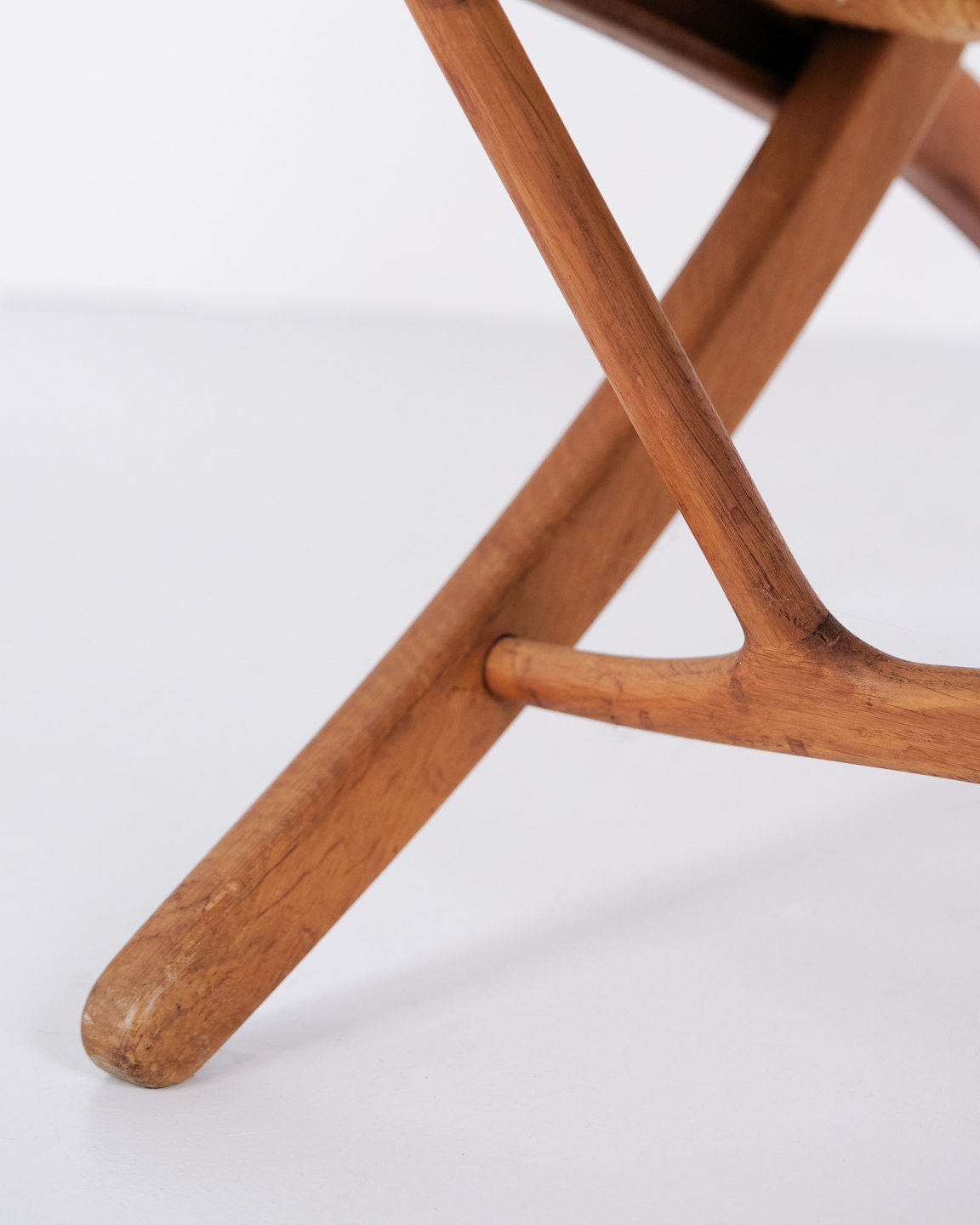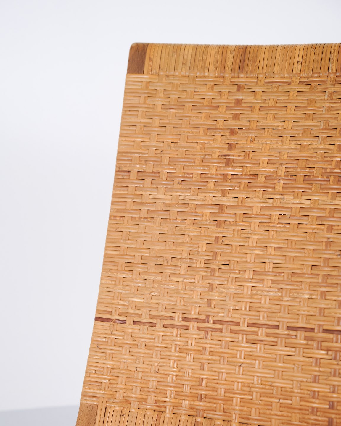 Wegner JH512 Kaminstolen af Johannes Hansen i patineret egetræ med originalt flet og producentstempel. Dansk design 1950’erne.— Designer: Hans J. Wegner