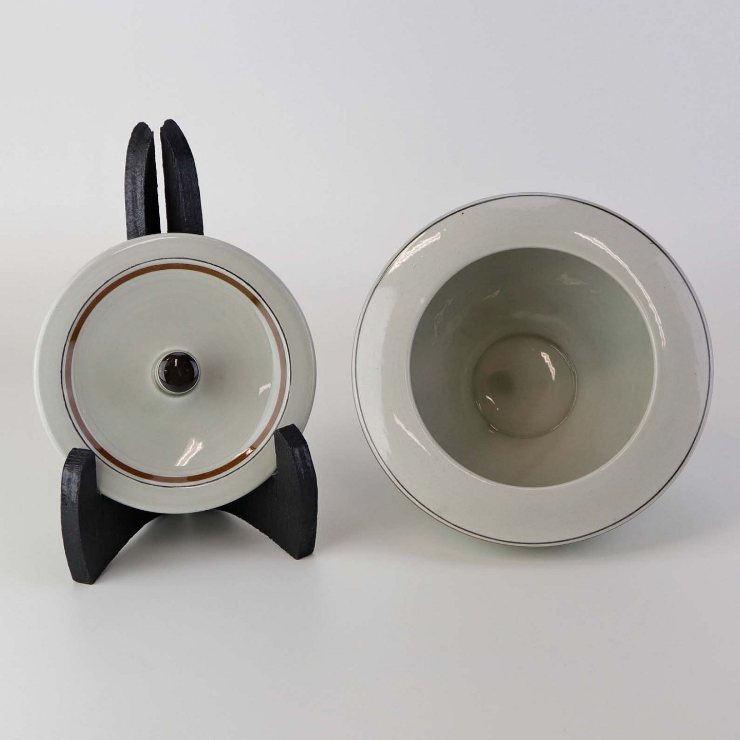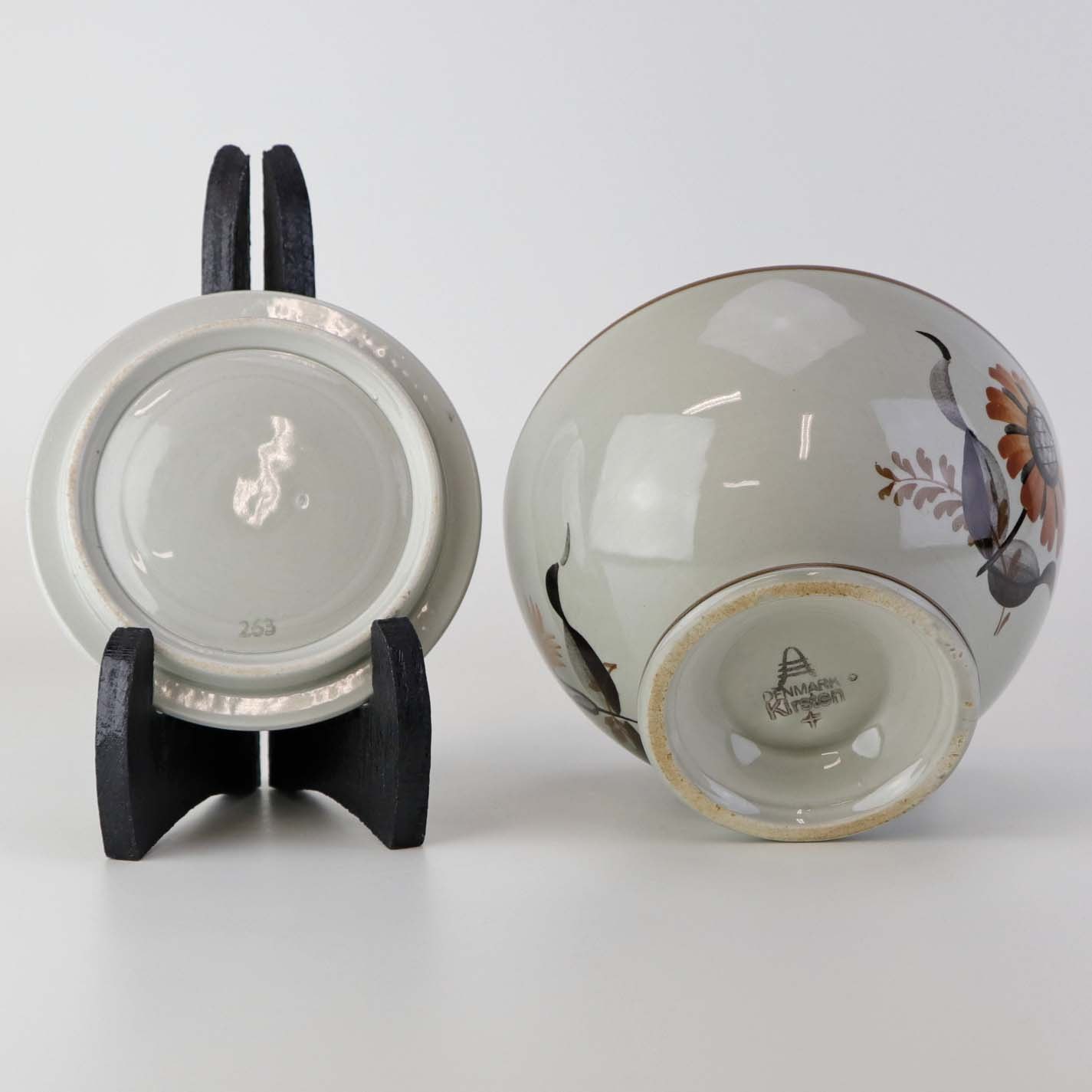 Lågskål til sukker i fajance fra stellet Kirsten, som blev fremstillet i perioden 1934-1957. Nr. 263Fomgiver Nils Thorsson