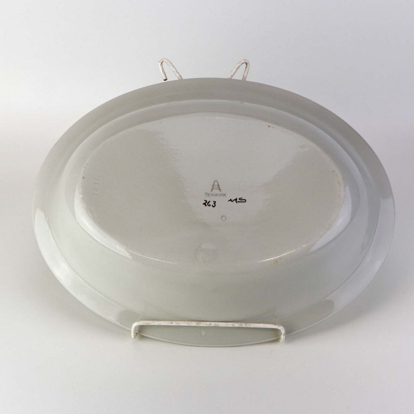 Oval serveringsskål i fajance fra stellet Kirsten, som blev fremstillet i perioden 1934-1957. Nr. 263Fomgiver Nils Thorsson