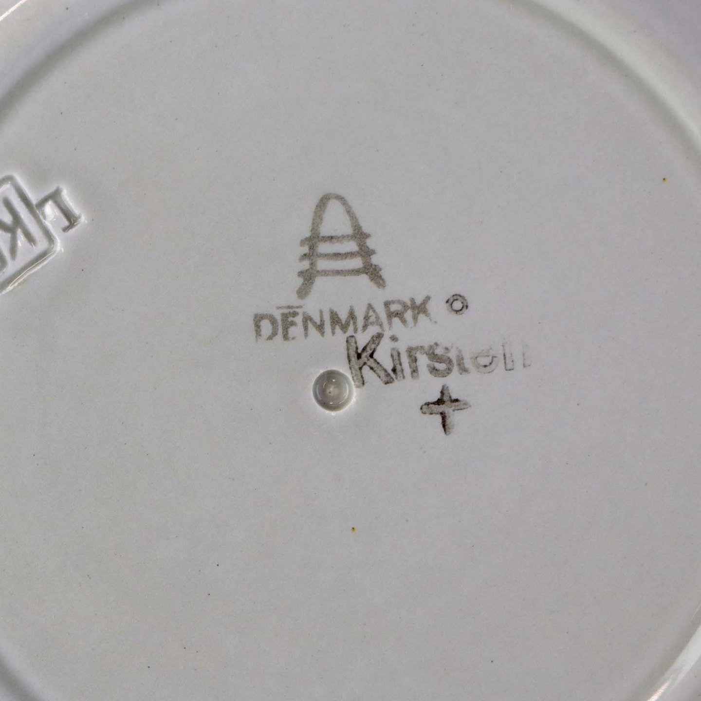 Kagetallerken i fajance fra stellet Kirsten, som blev fremstillet i perioden 1934-1957.Fomgiver Nils Thorsson
