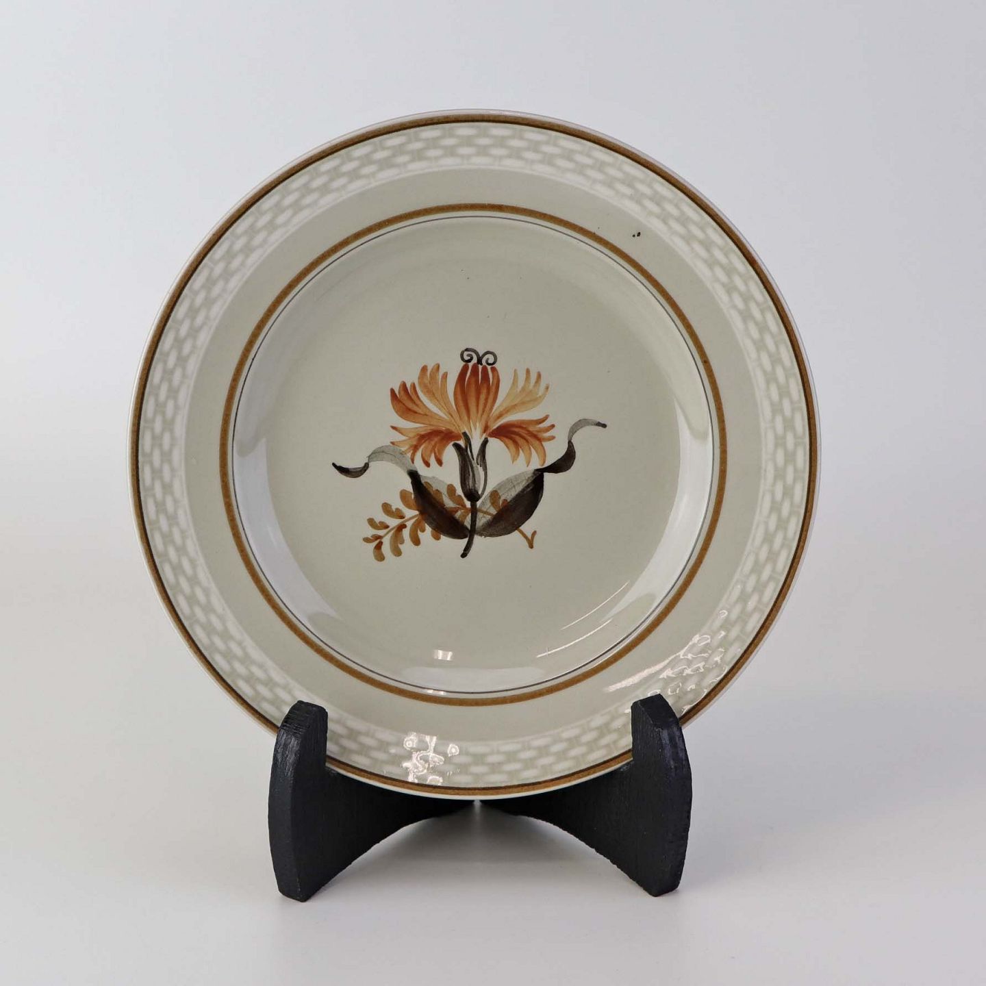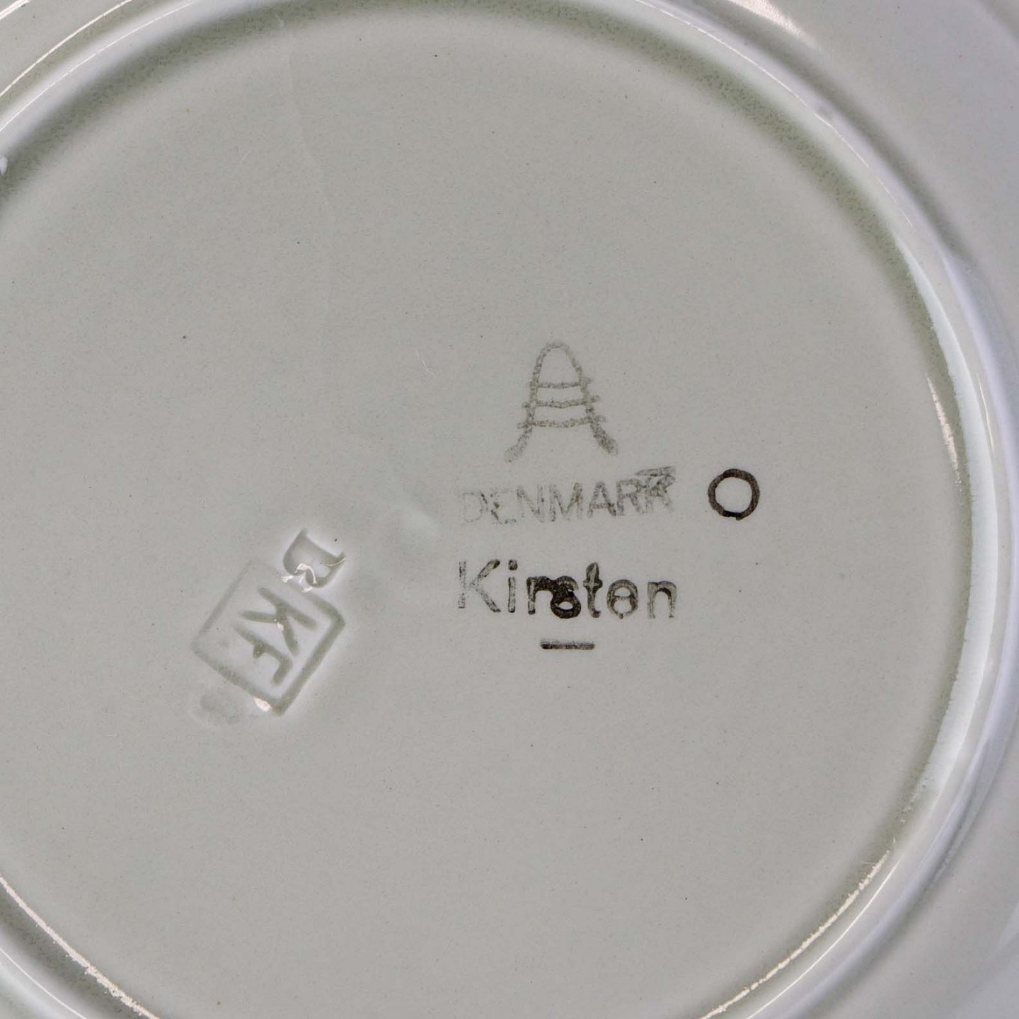 Desserttallerken i fajance fra stellet Kirsten, som blev fremstillet i perioden 1934-1957.Fomgiver Nils Thorsson