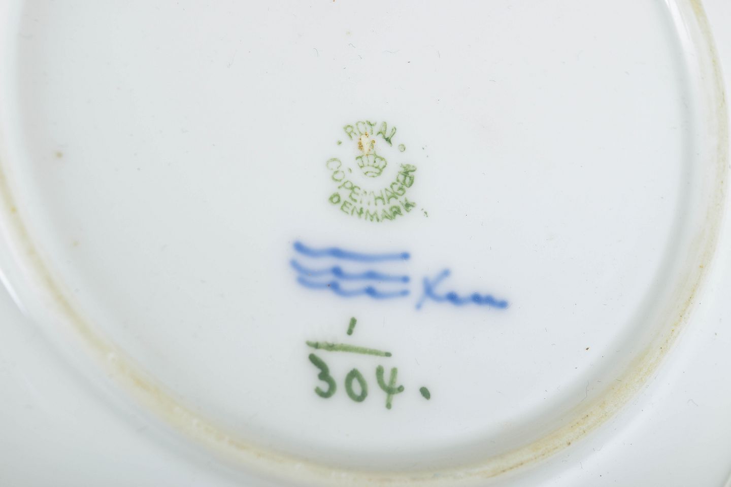 Rund porcelænsskål dekoreret med håndmalet koboltblåt underglasur i det klassiske Musselmalet Riflet mønster. Skålen har en blød, harmonisk form med let udsvajet rand og opdelt spejl med centrale blomster- og rankemotiver. Modellen er 1/304 og repræsenterer Royal Copenhagens høje håndværksmæssige niveau fra mellemkrigstiden.