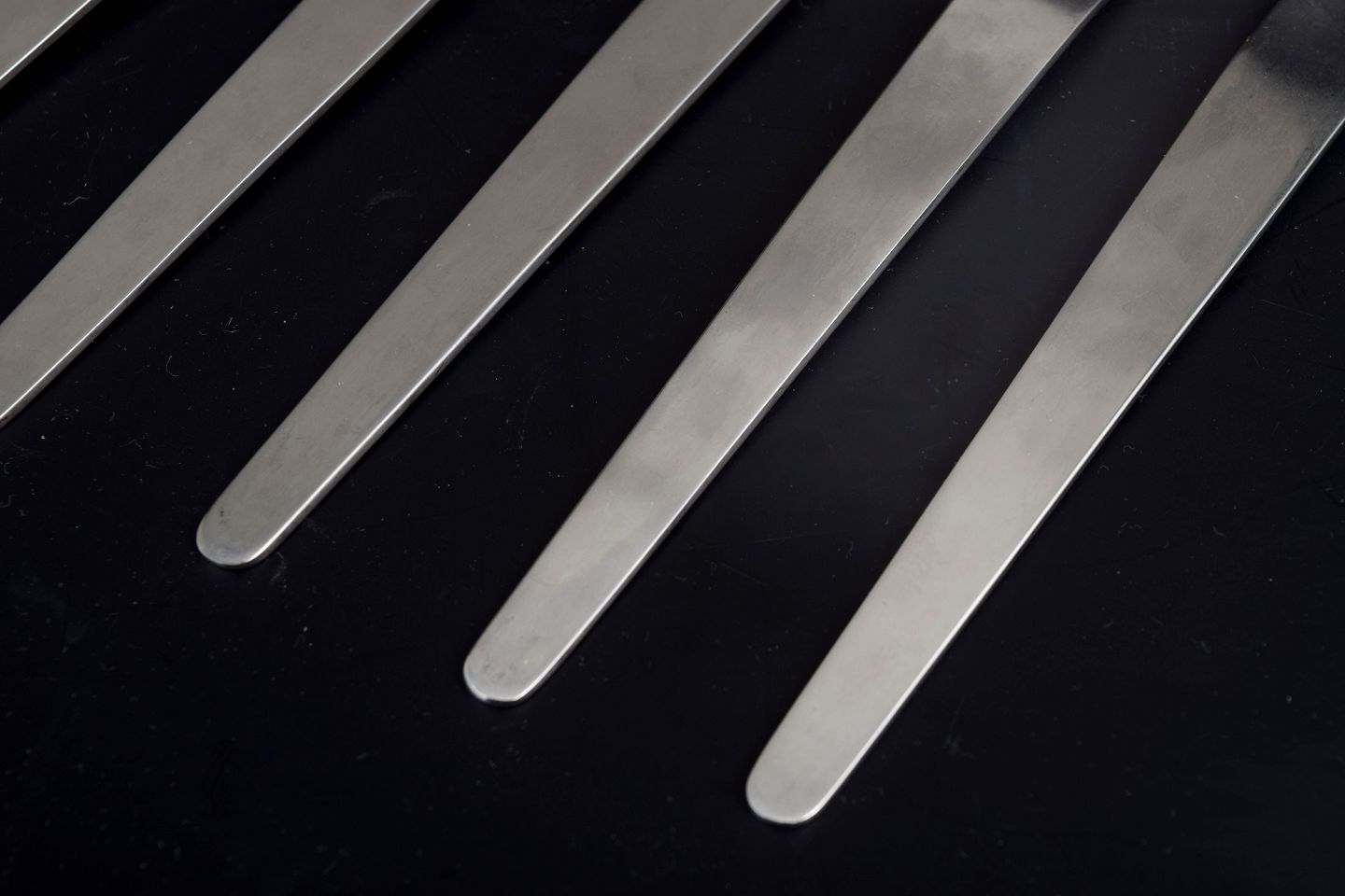 Fem middagsgafler i rustfrit stål.