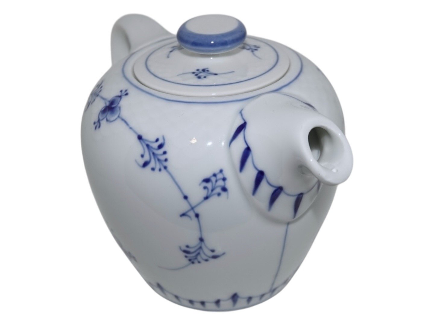 Bing & Grøndahl Blåmalet / Musselmalet tykt jernporcelæn, lille tekande med logo fra Hotel Royal.Af fabriksmærket ses det, at denne er produceret mellem 1948 og 1952.