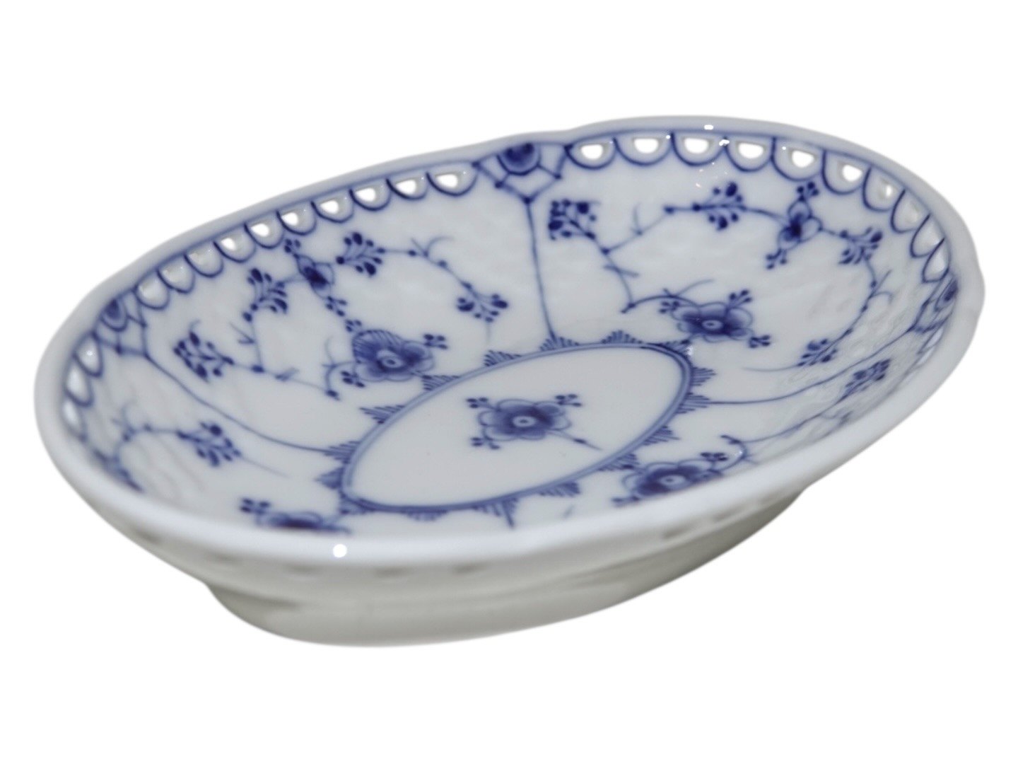 Bing & Grøndahl Blåmalet / Musselmalet, sjældent set mini fad med blondekant.Af fabriksmærket kan det udledes, at disse er produceret mellem 1915 og 1948.