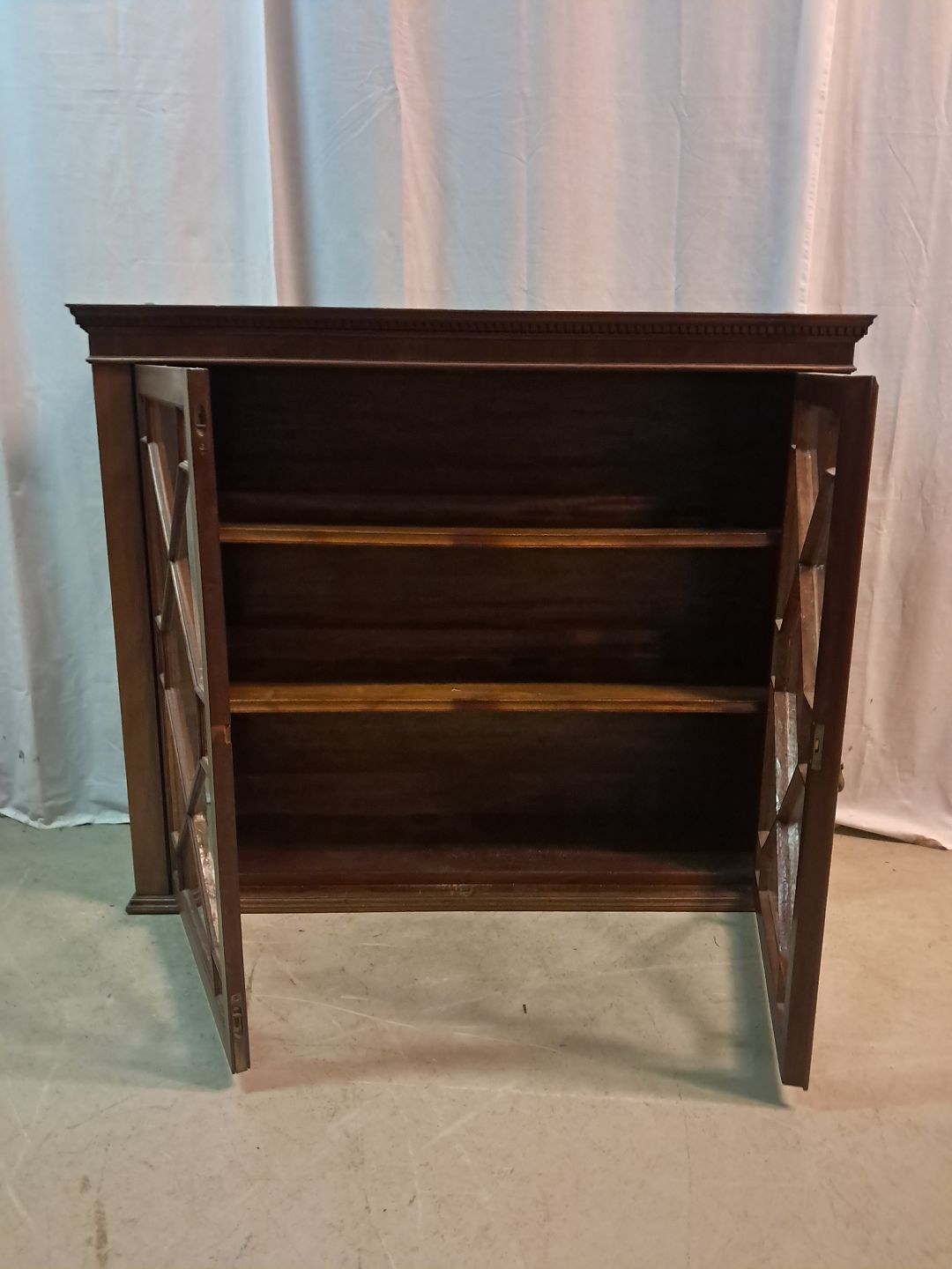 Vægskab i fineret mahogni, fra 1950erne.Det har brugsspor.