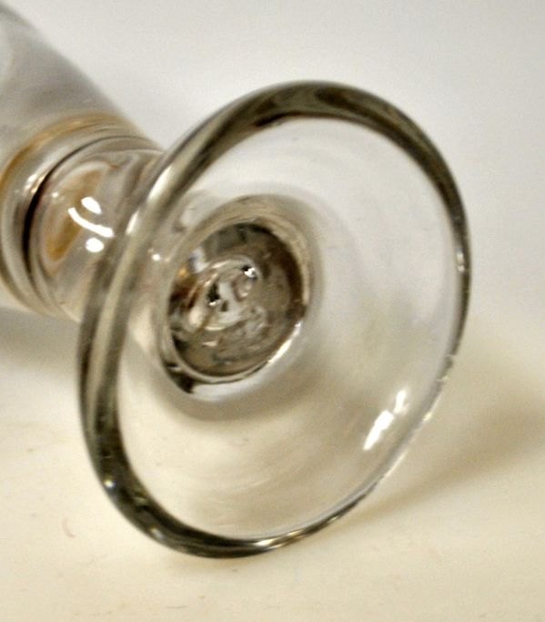 Frimurerglas. Conradsminde, 1834 - 1857, Danmark. Klart glas med bøjet fod og hul stilk. Dia.: 5,8 cm. H.: 12,3 cm.Emne nummer: 28801