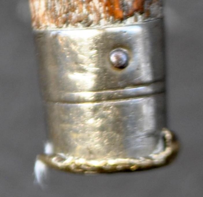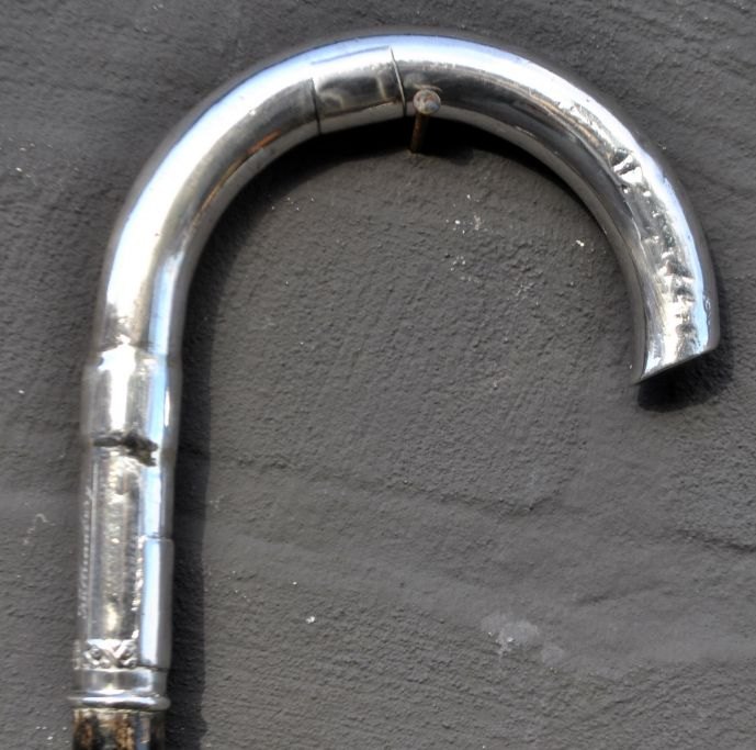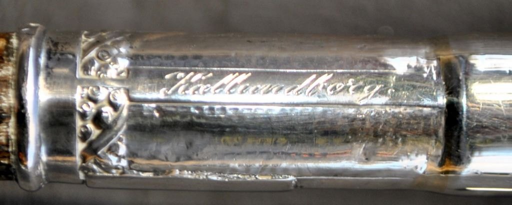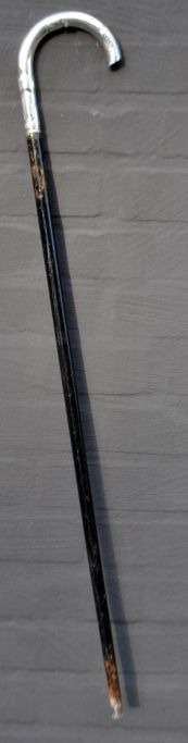 Sjælden stok i ibenholt med sølvhåndtag, 19. årh. Stemplet: 800 samt to utydelige stempler. Indgraveret: Togfören Kallundborg. Med metalspids. L: 82 cm.Emne nummer: 28917