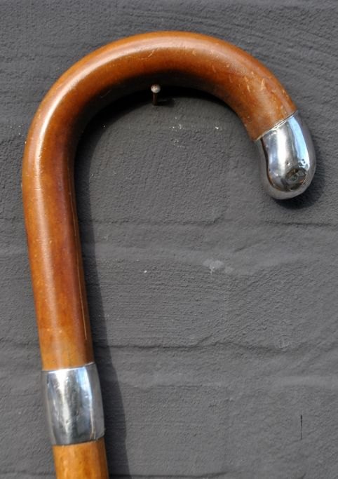Stok i træ med sølvbeslag, Sverige, 19. årh. Stemplet: S og 830S samt trekroner. Med metalspids. Sølvskilt med ejernavn. L: 92 cm.Emne nummer: 28918