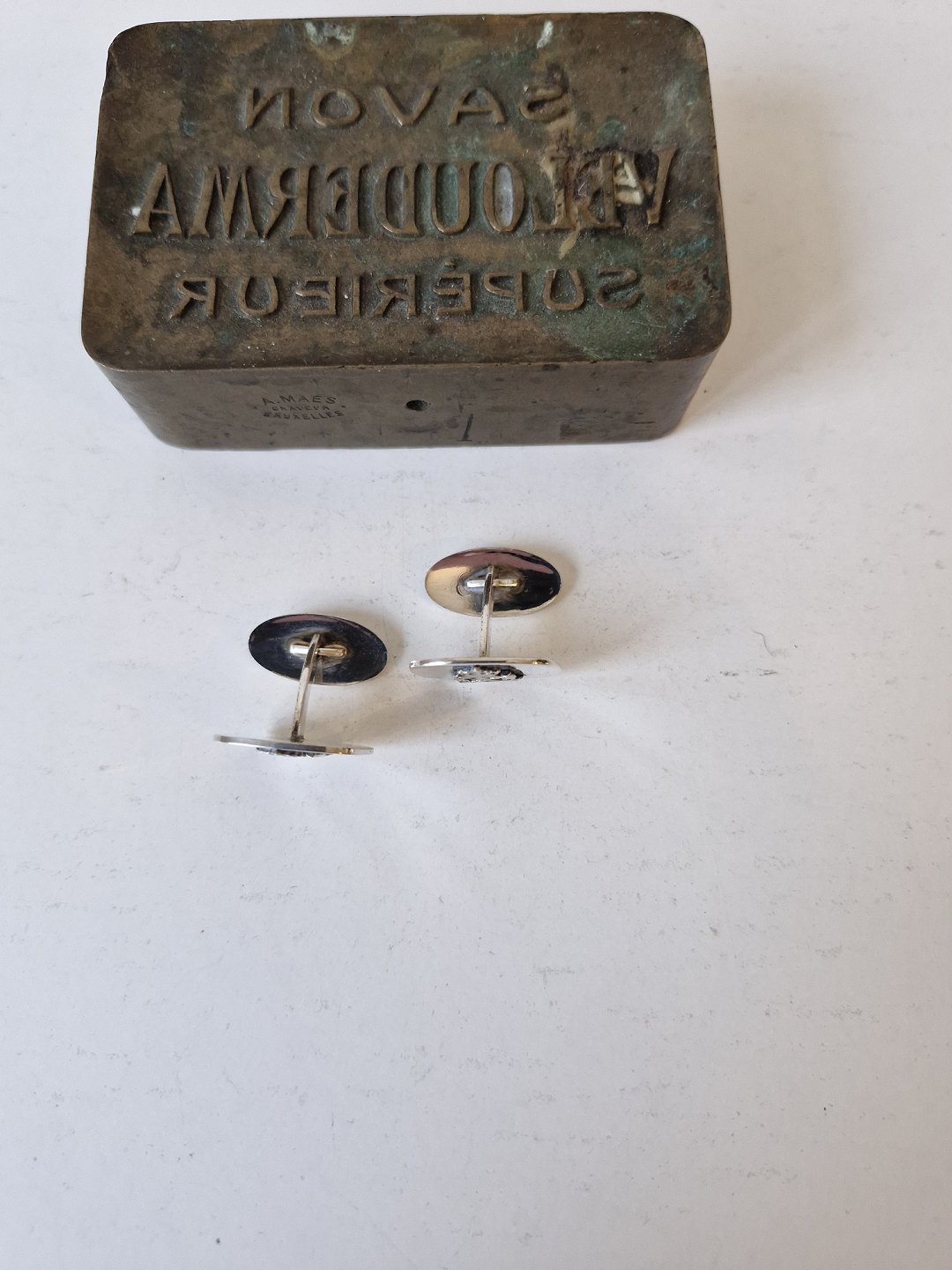 Manchetknapper i sterlingsølv med Ingeniørregimentets logo udført af Hermann SiersbølStemplet: HS - 925