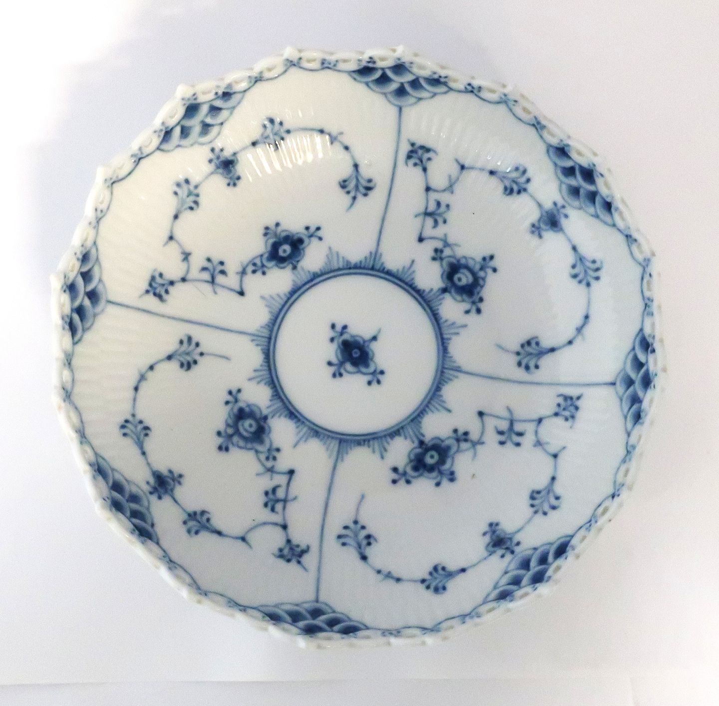Royal Copenhagen. Musselmalet helblonde. Rund skål. Model 577 (1018). Højde 6 cm. Diameter 21 cm. (2 sortering) Udstiller