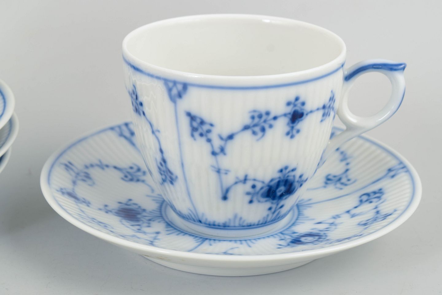 Royal Copenhagen, Musselmalet Riflet, kaffestel til 4 personer.Kaffestel i porcelæn fra serien Musselmalet Riflet, bestående af kopper og underkopper til fire personer, model 1/2162. Klassisk riflet form med håndmalet blå dekoration.