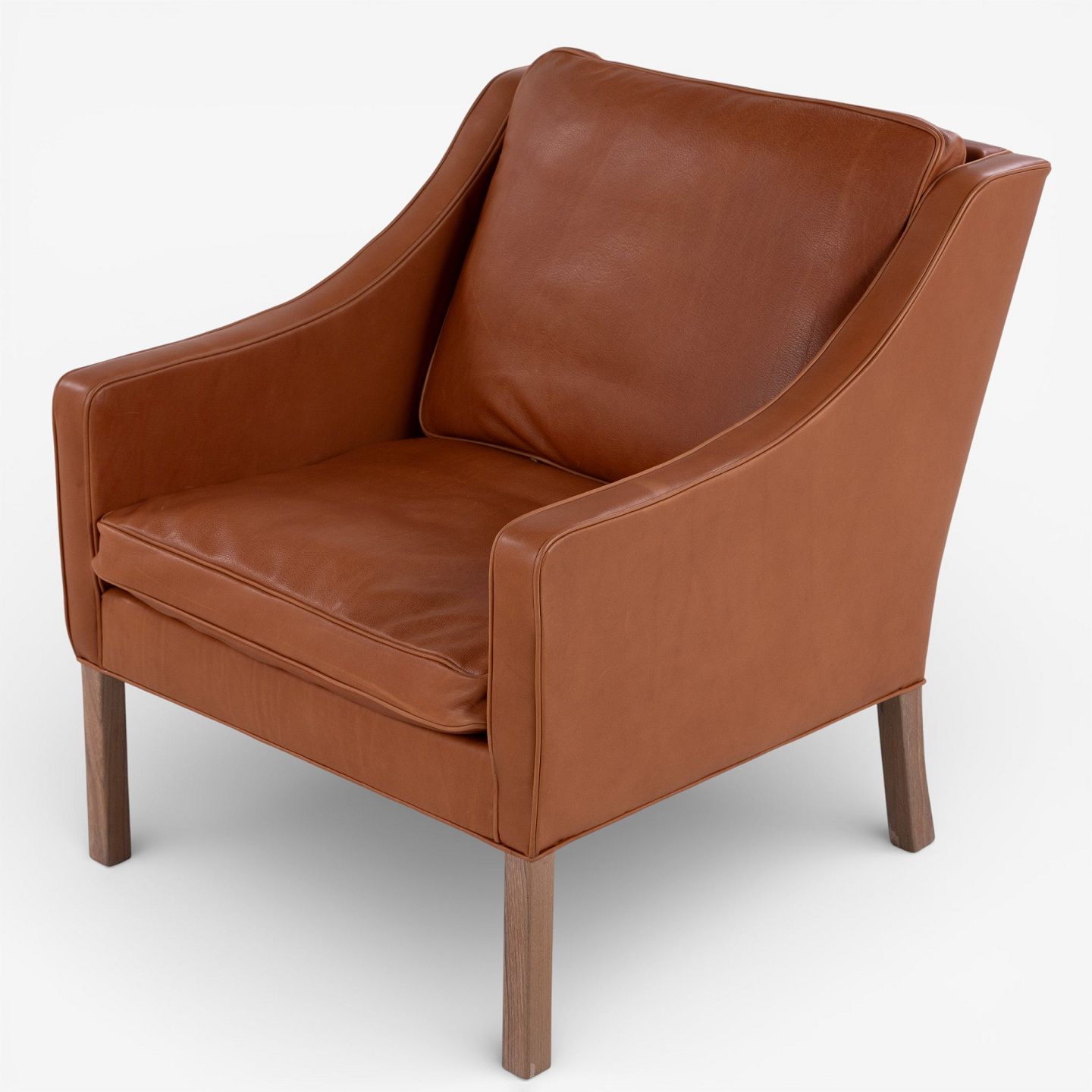 BM 2207 - Nybetrukket lænestol i cognac-farvet anilinlæder med hvidolieret ben.