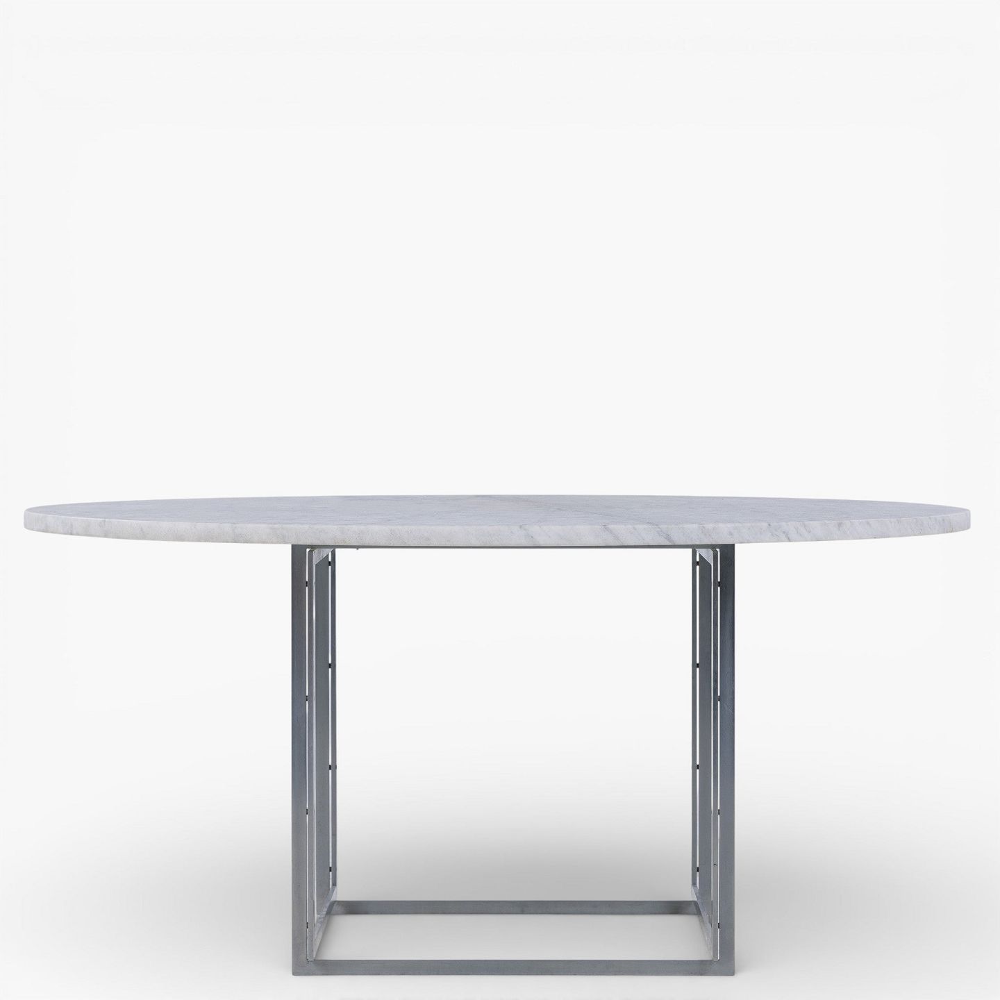 PK 54 - Rundt spisebord med lys flintrullet marmor-plade på stel af matforkromet stål. Formgivet i 1963.