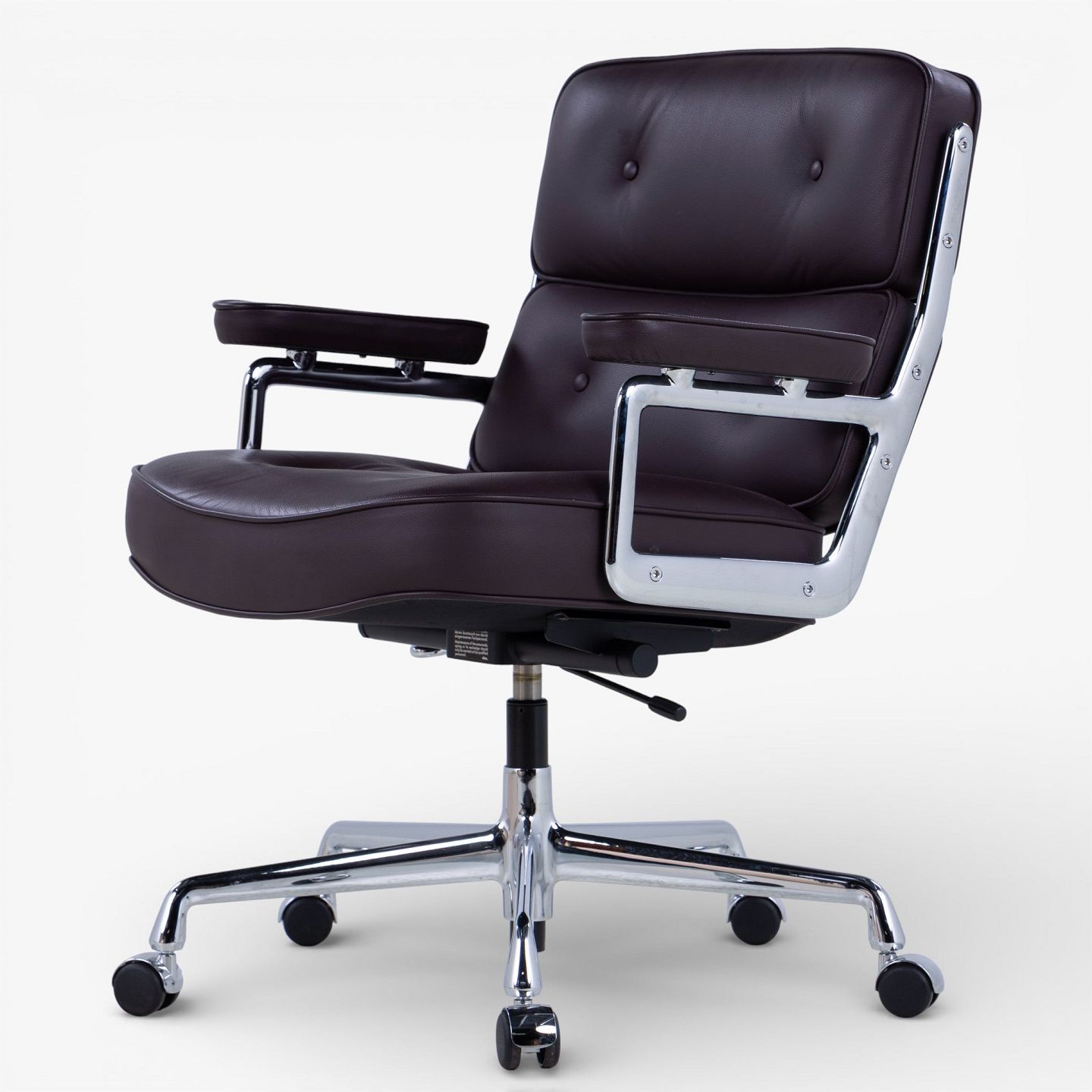 ES-104 - Kontorstol i mørkebrunt læder m. armlæn og stel i stål m. højdejustering. Mærket fra producent.