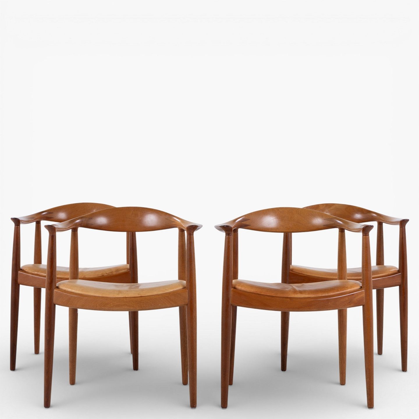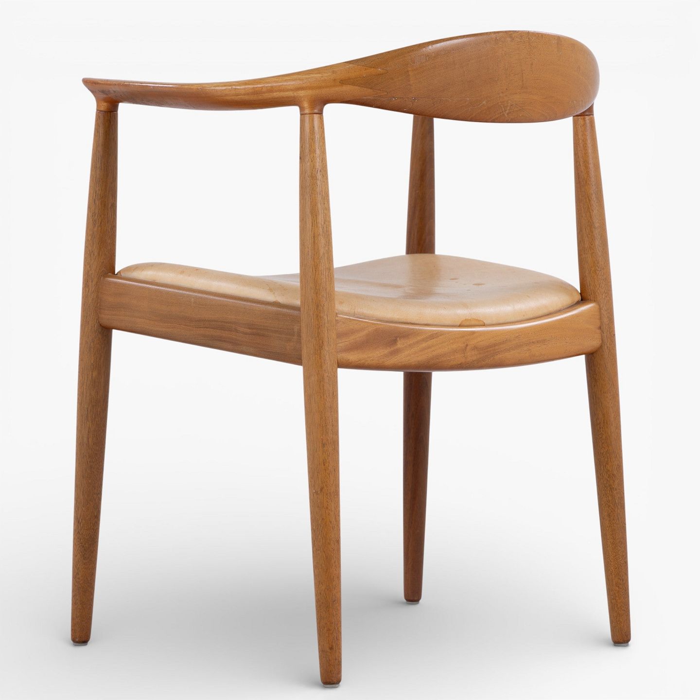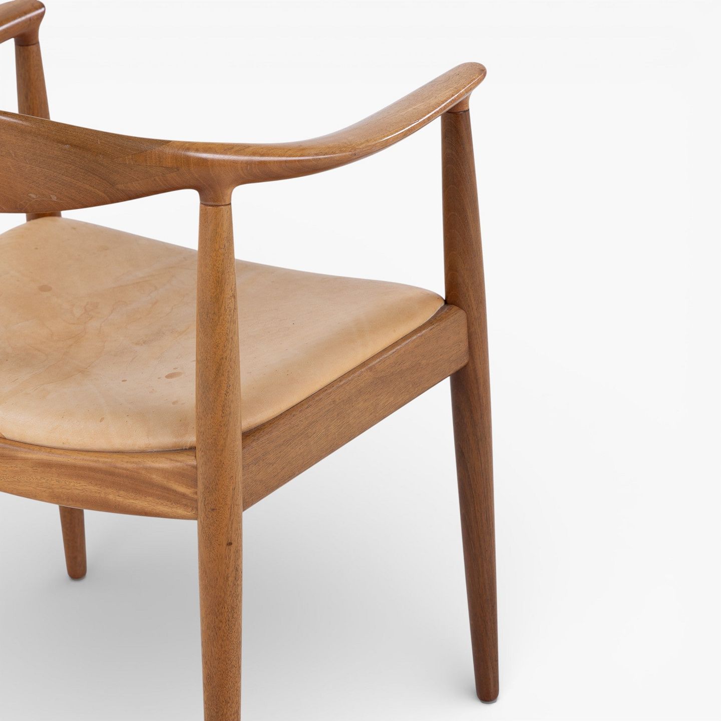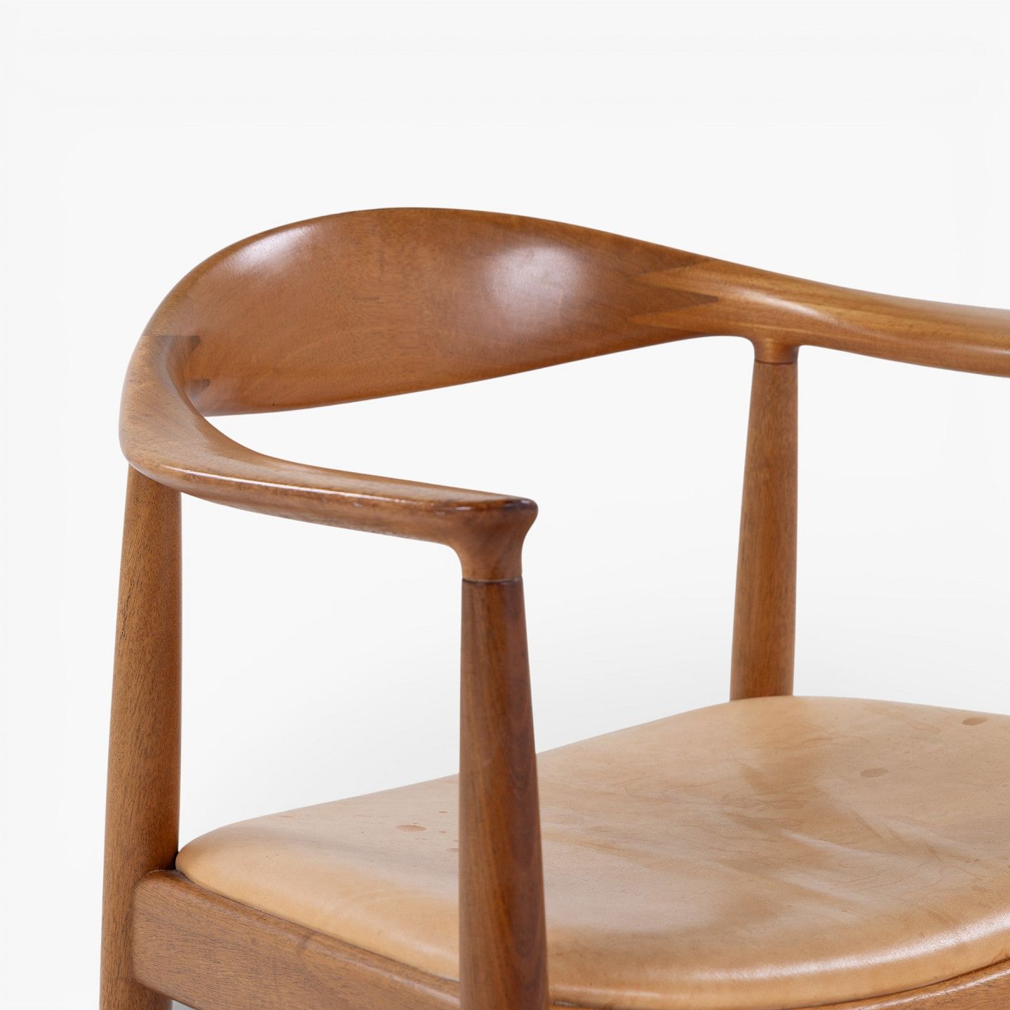 JH 503 - 'The Chair'-armstol i mahogni med sæde i patineret naturlæder. Mærket fra producent.