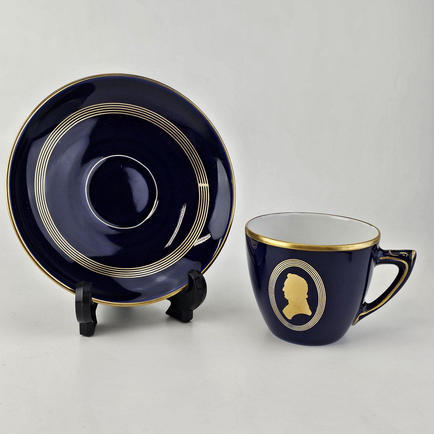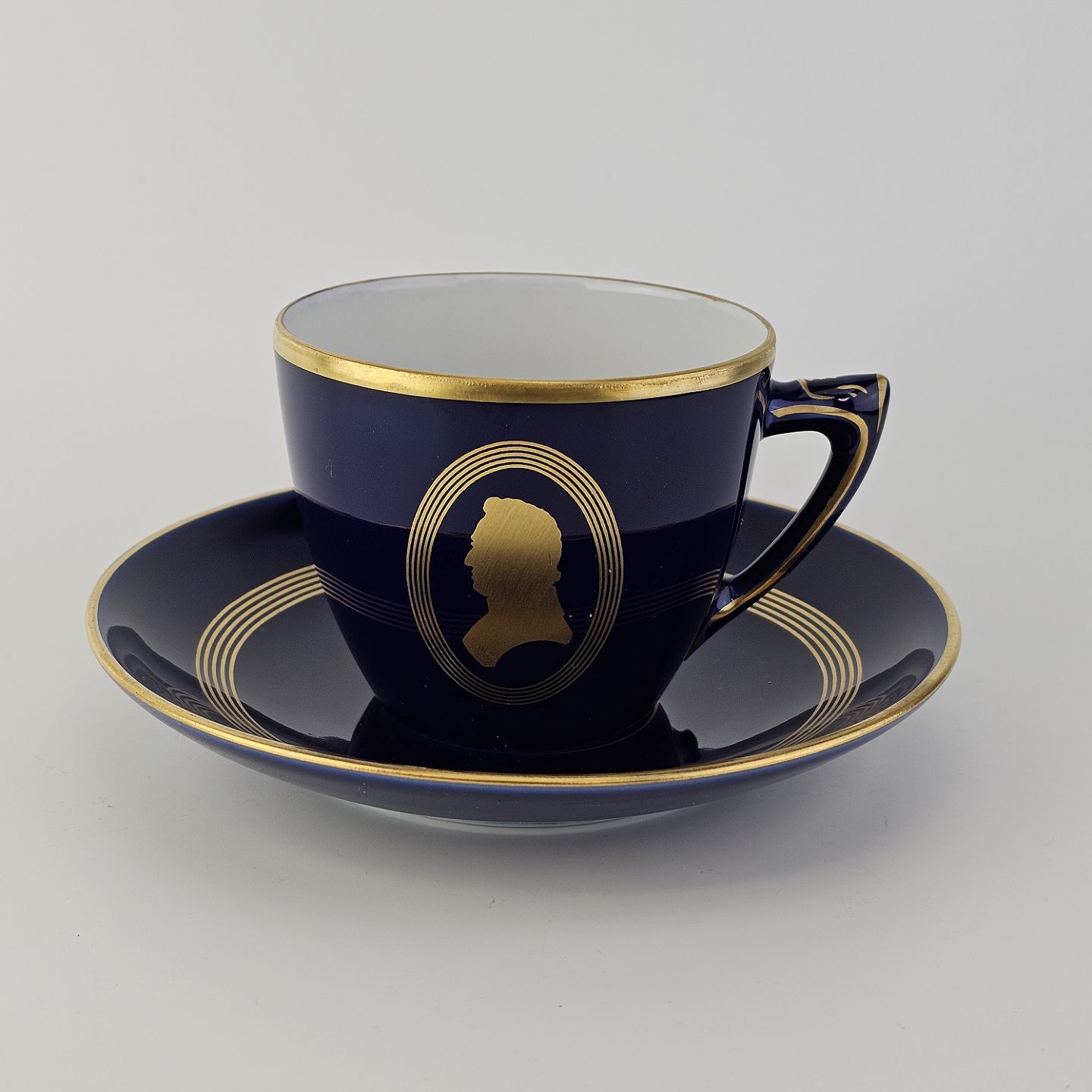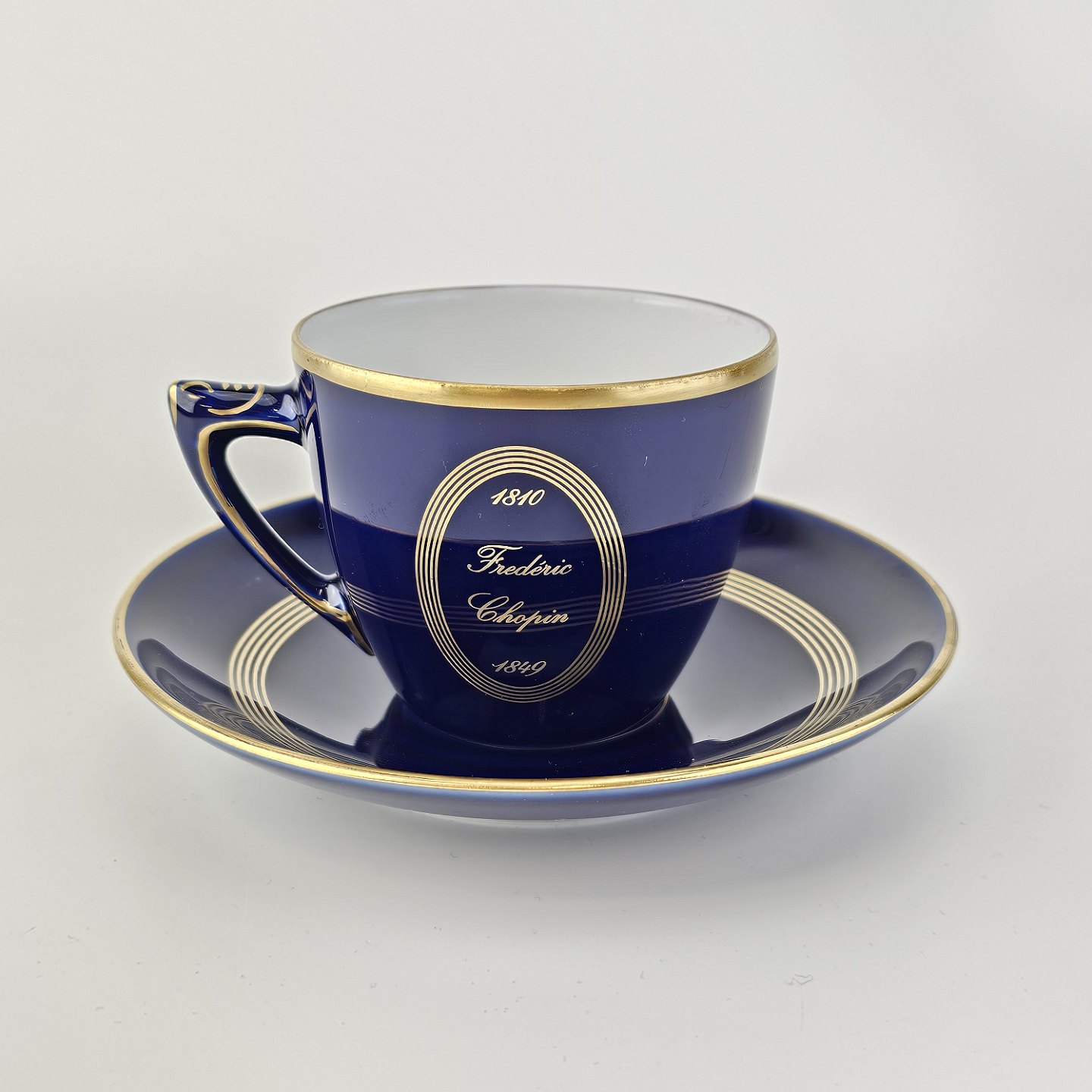 Kop med underkop i porcelæn fra stellet Komponist med motiv af ChopinNr. 4534/305