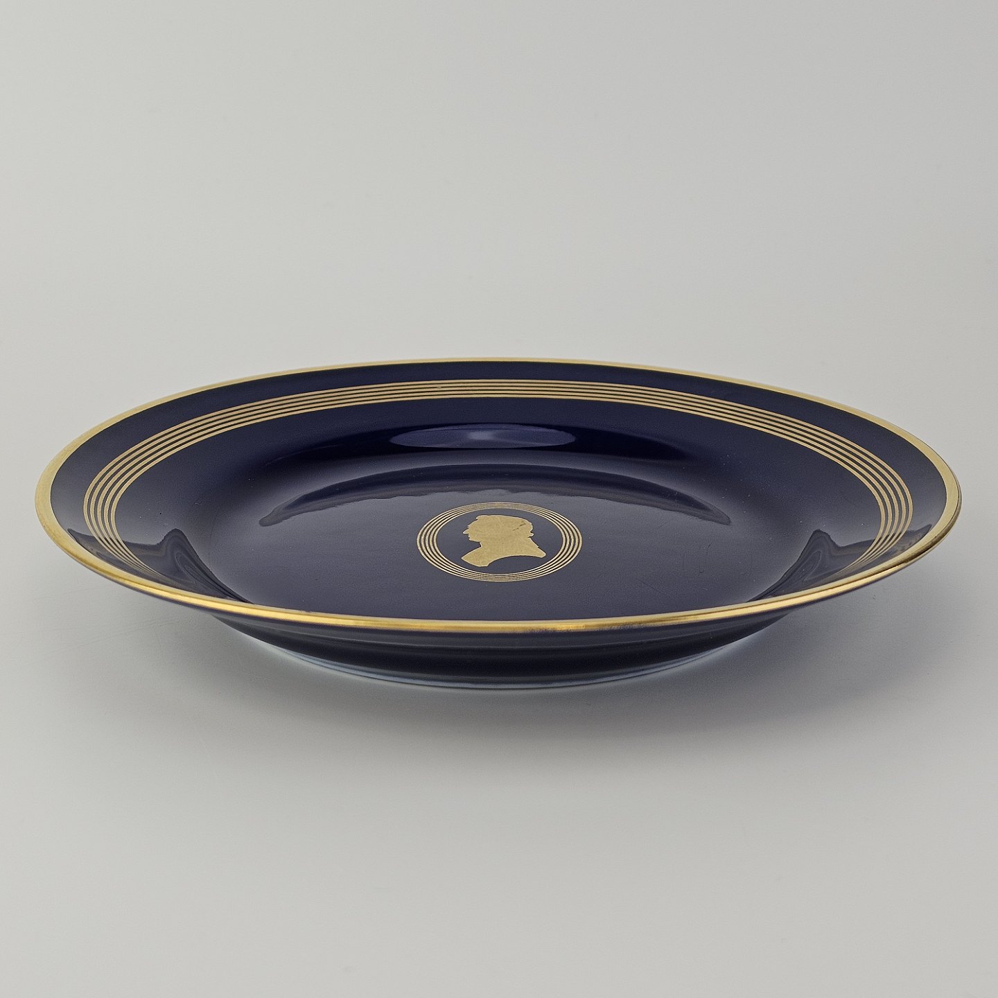 Komponist er blåt porcelæn med dekoration i guld i tema efter komponister