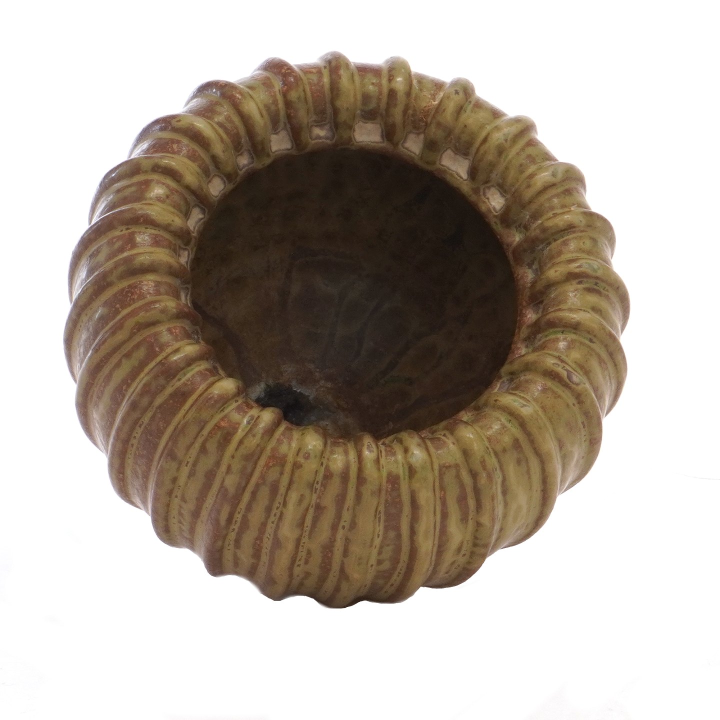 Arne Bang bredriflet vase med brungrøn glasur og hvælvet kantSigneret