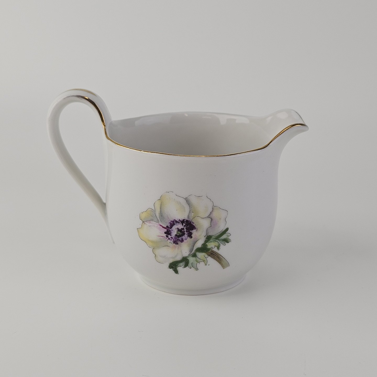 Flødekande i porcelæn fra stellet Fransk Anemone med guldkantNr. 95