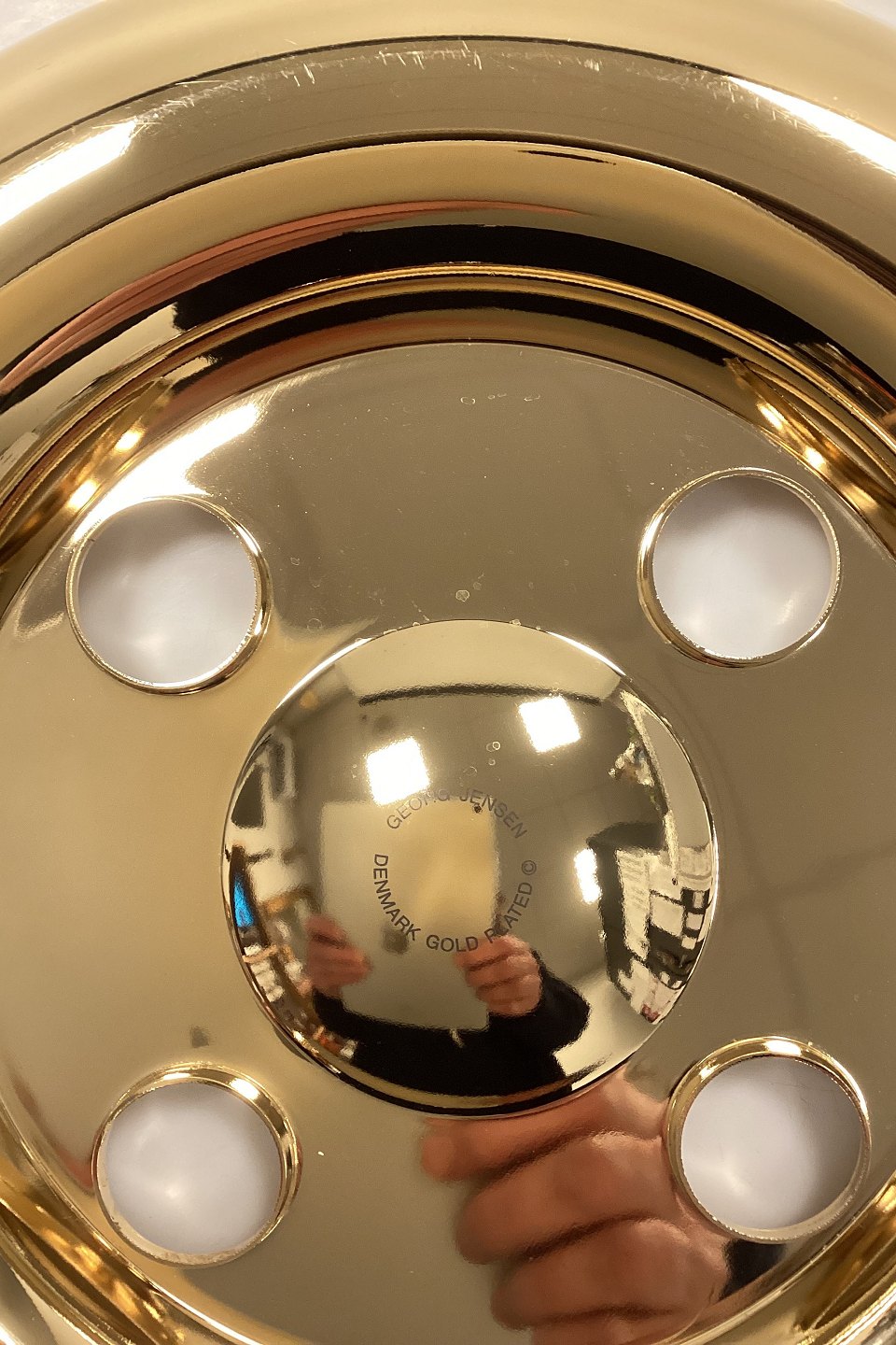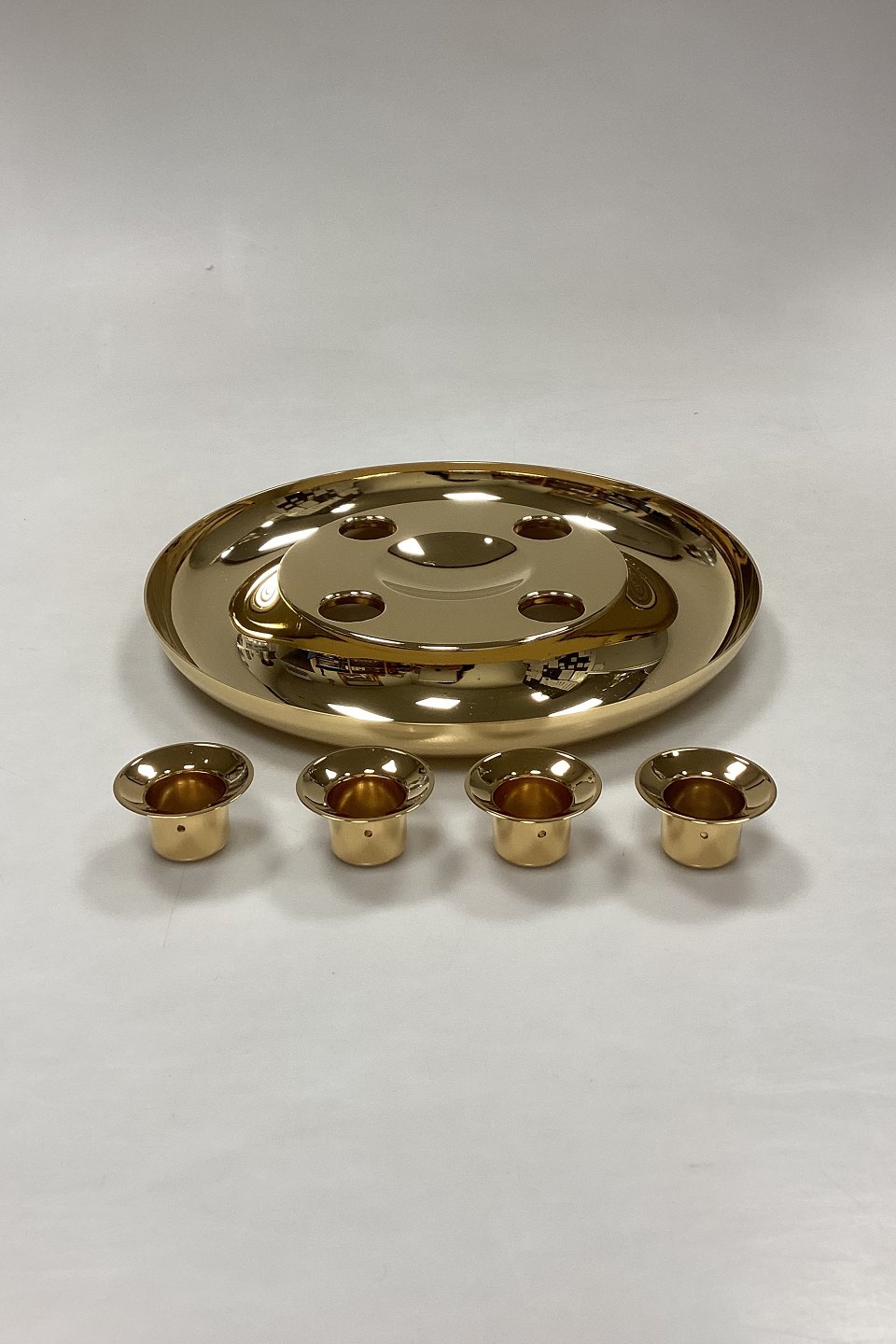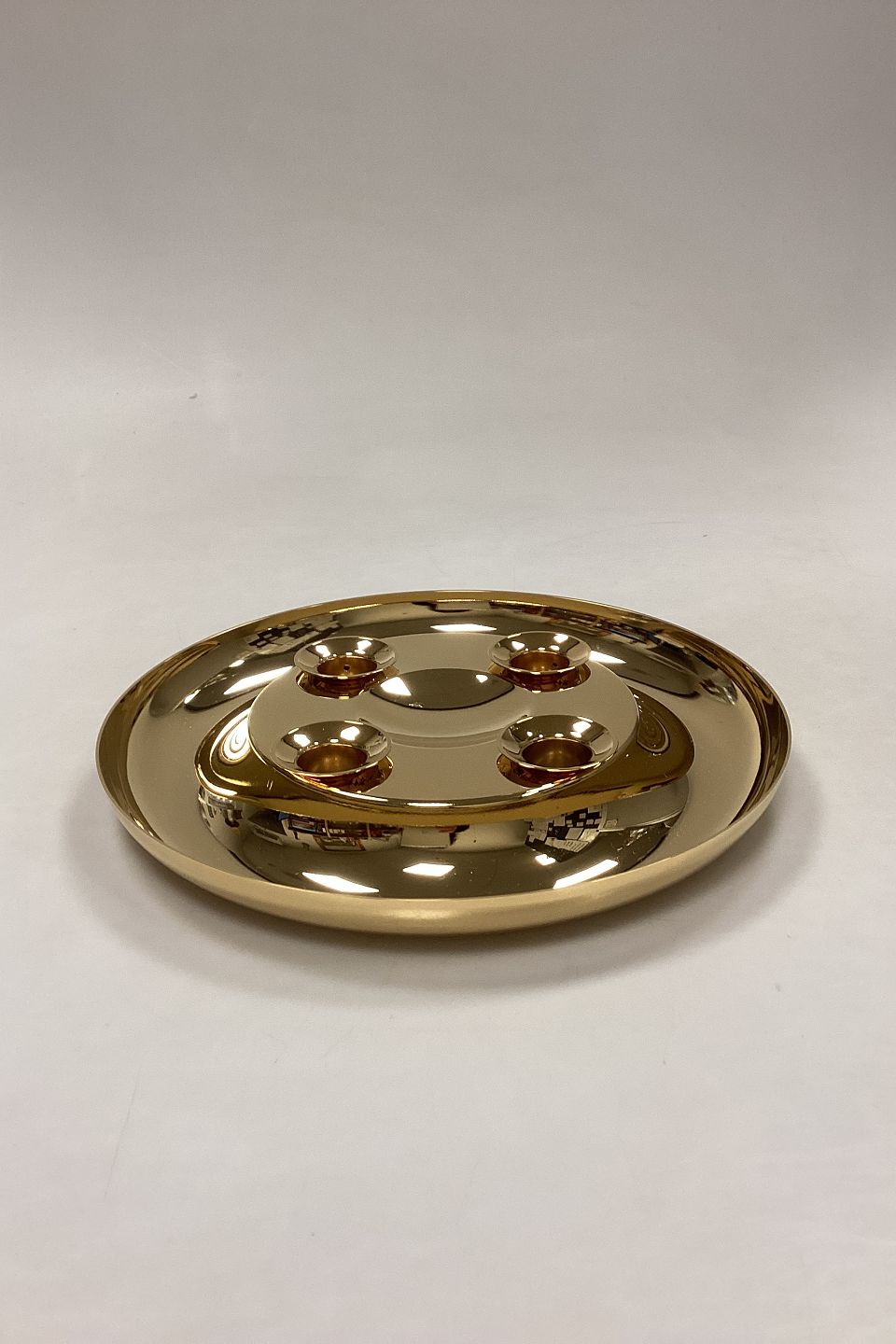 Georg Jensen Adventsstage. Krans i forgyldt messing med aftagelige lyseholdere. Design: Andreas Mikkelsen.Måler 24 cm / 9,45 in.