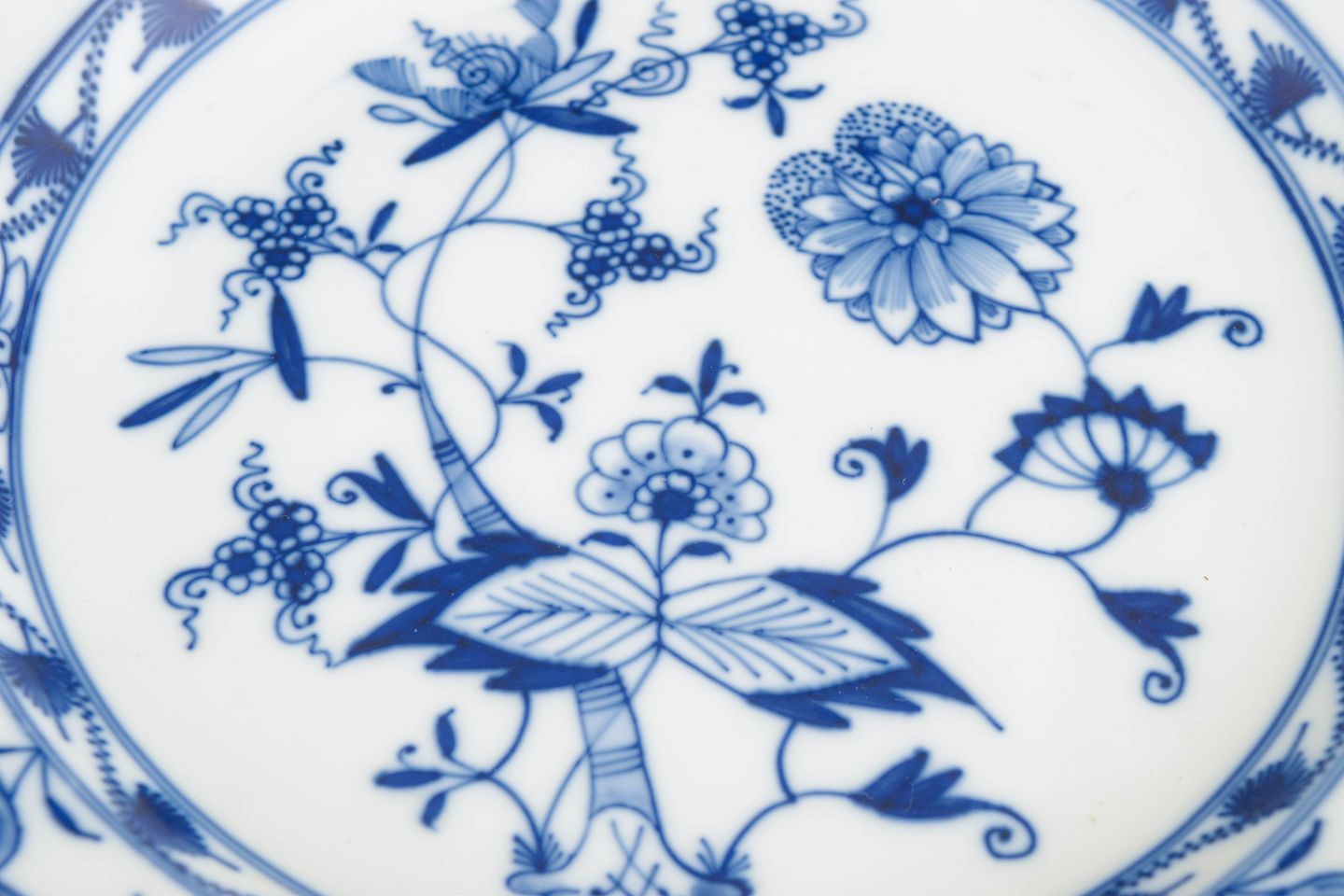 Meissen, sæt på 4 dybe tallerkener, Løgmønster.Sæt med fire dybe tallerkener i hvidglaseret porcelæn med blå underglasurdekoration i det klassiske løgmønster.