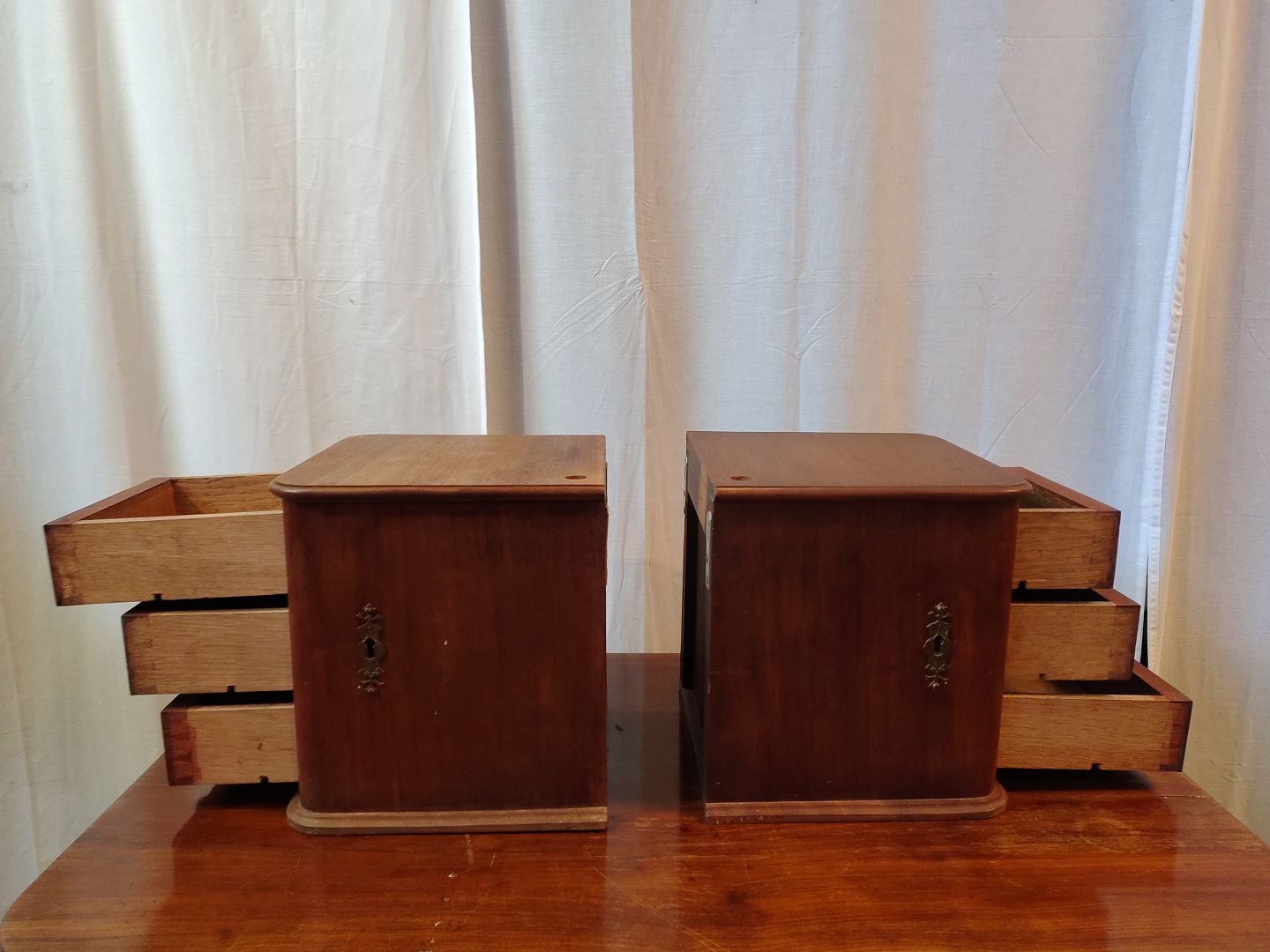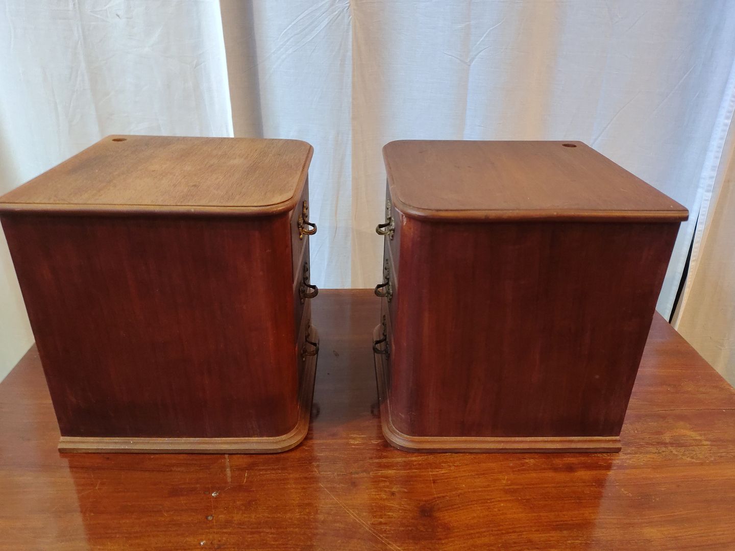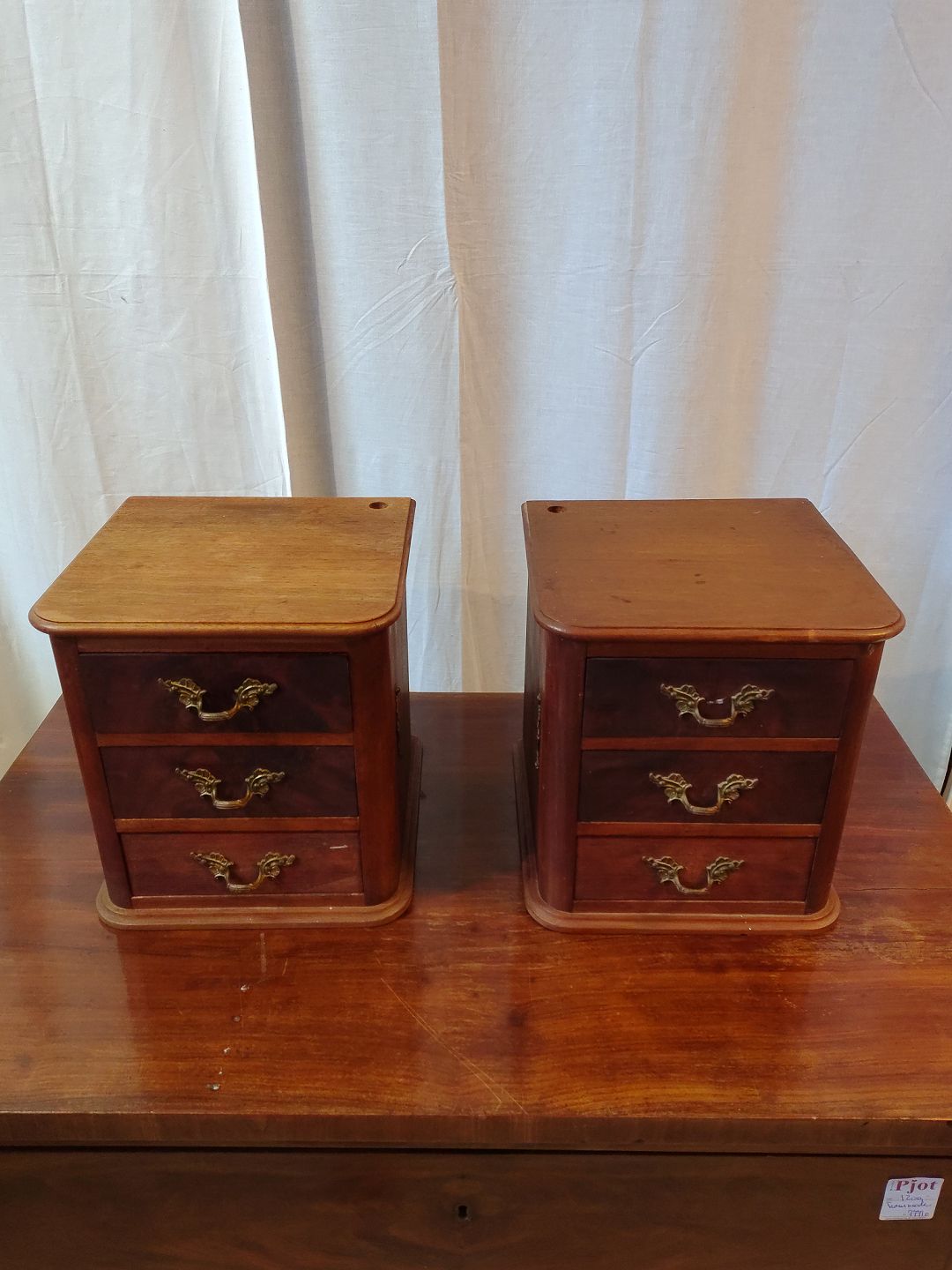 2 Små kommoder i fineret mahogni, fra 1910erne.De har brugsspor.