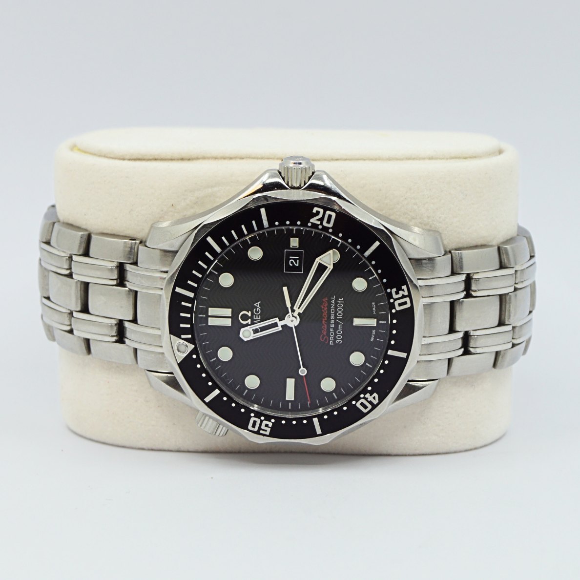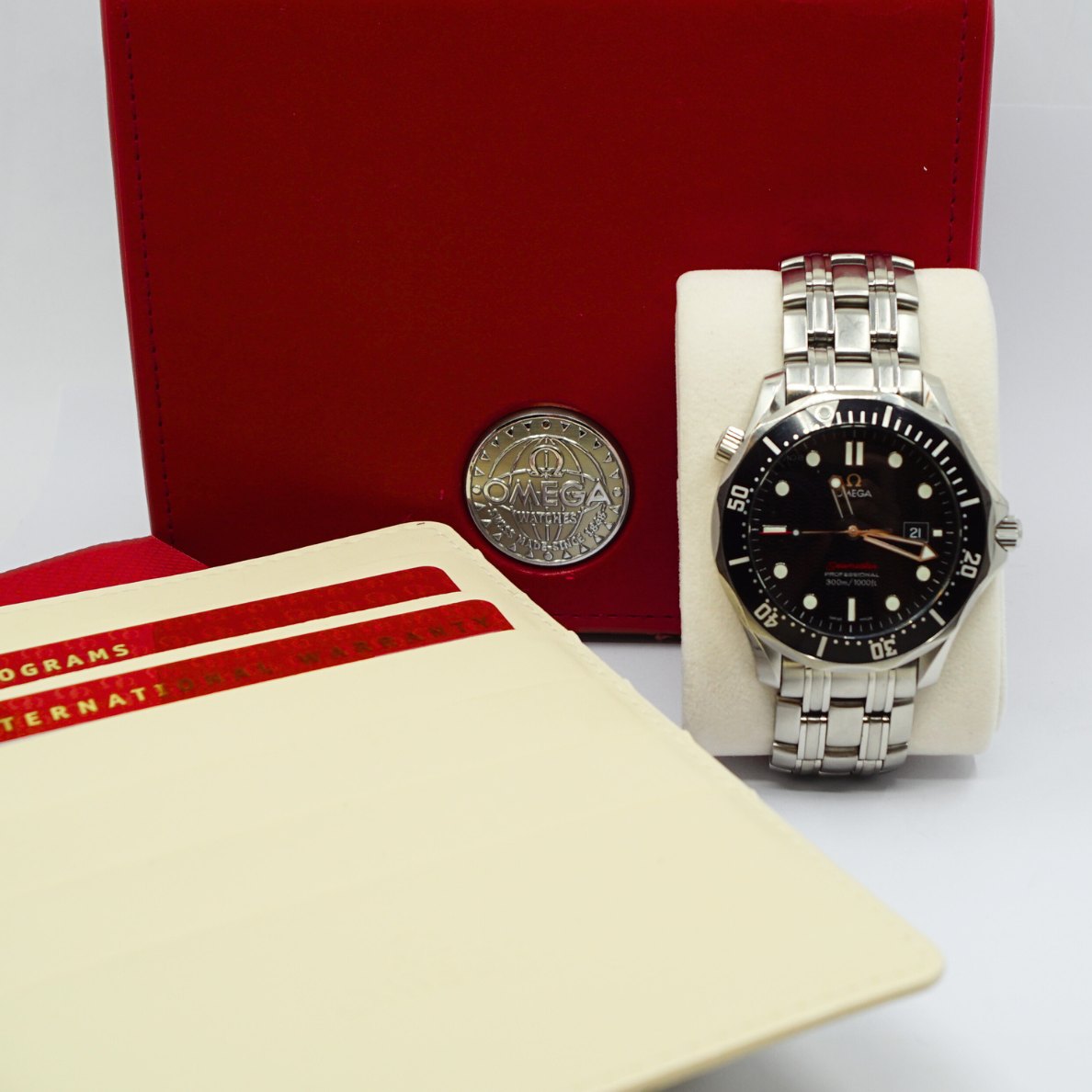 Omega armbåndsur, model Seamaster Professionel 300m/1000ft, med sort urskive og stål rem. Ref. 21230416101001. Cal: 1538. Automatic. Omega herreur, købt fra ny d. 10/09/08. Diameter 42 mm. Med original æske og papirer. Ekstra led medfølger.