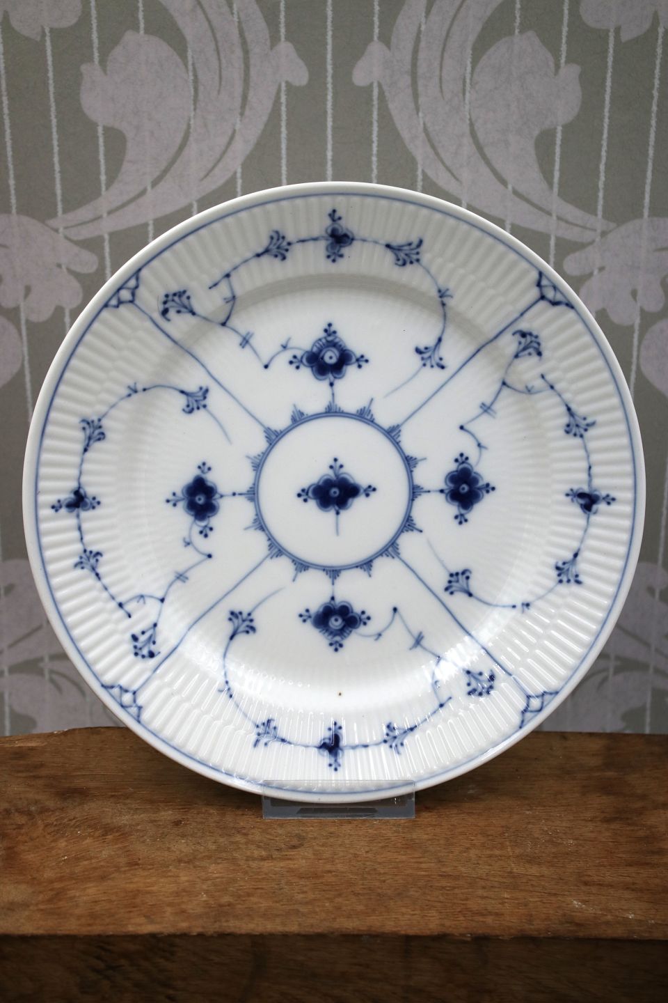 Gammel Bing & Grøndahl Musselmalet / Blåmalet Riflet middagstallerken.Dia.: 24cm. 2.sortering. Er i hel og i fin stand.