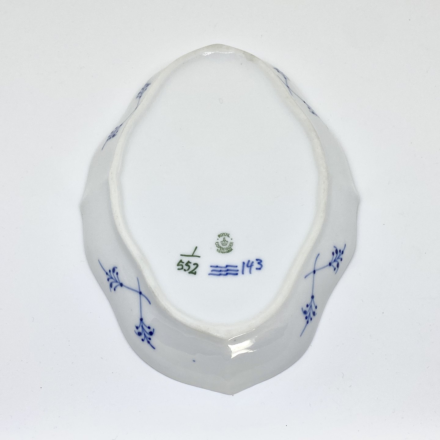 Royal Copenhagen/Kgl Musselmalet halvblonde oval asiet.Dekorations nummer 1/552