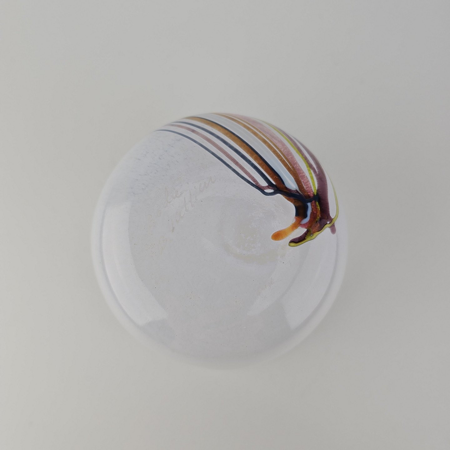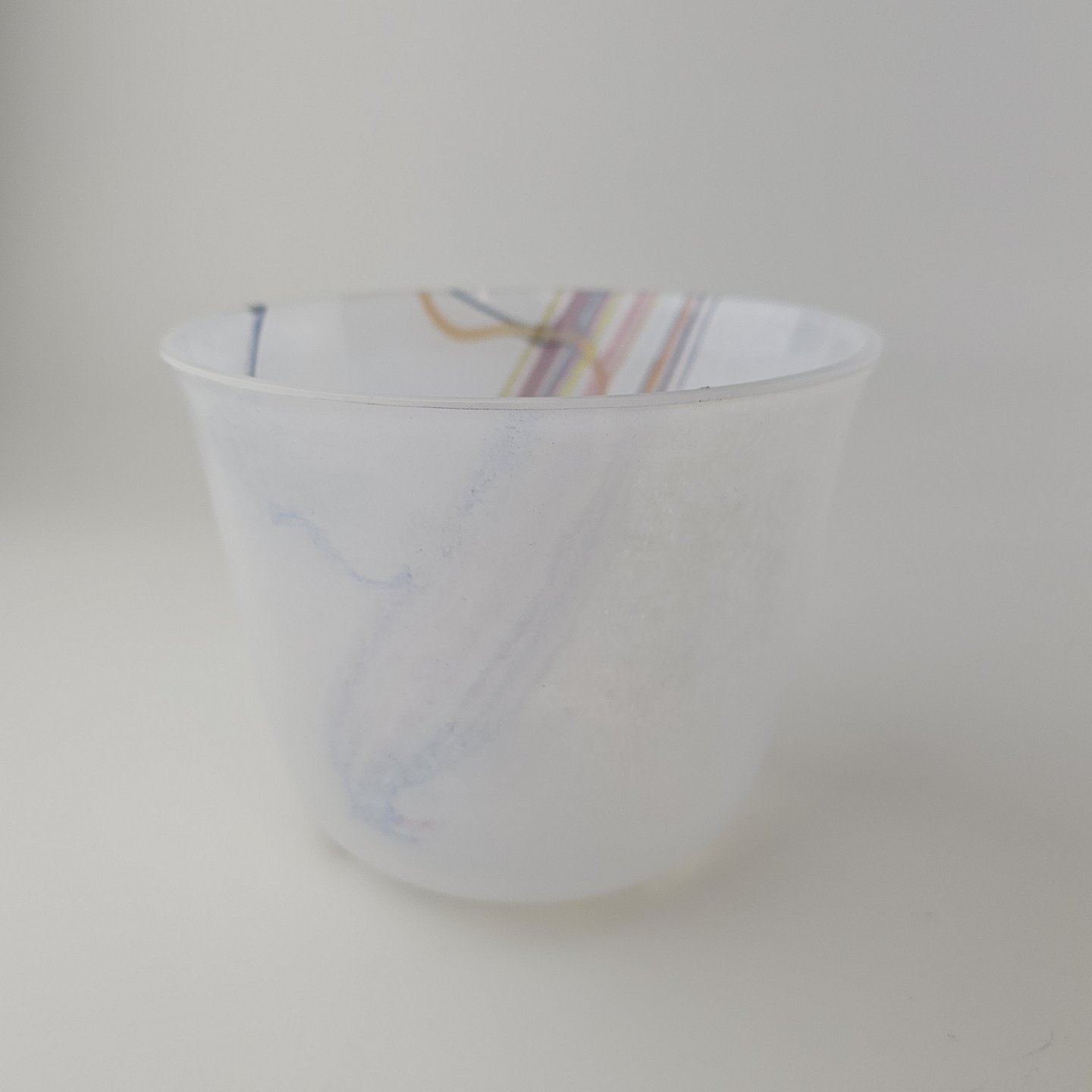 Skål i glas med abstrakt dekoration i flere farverFormgiver Bertil Vallien (1938)