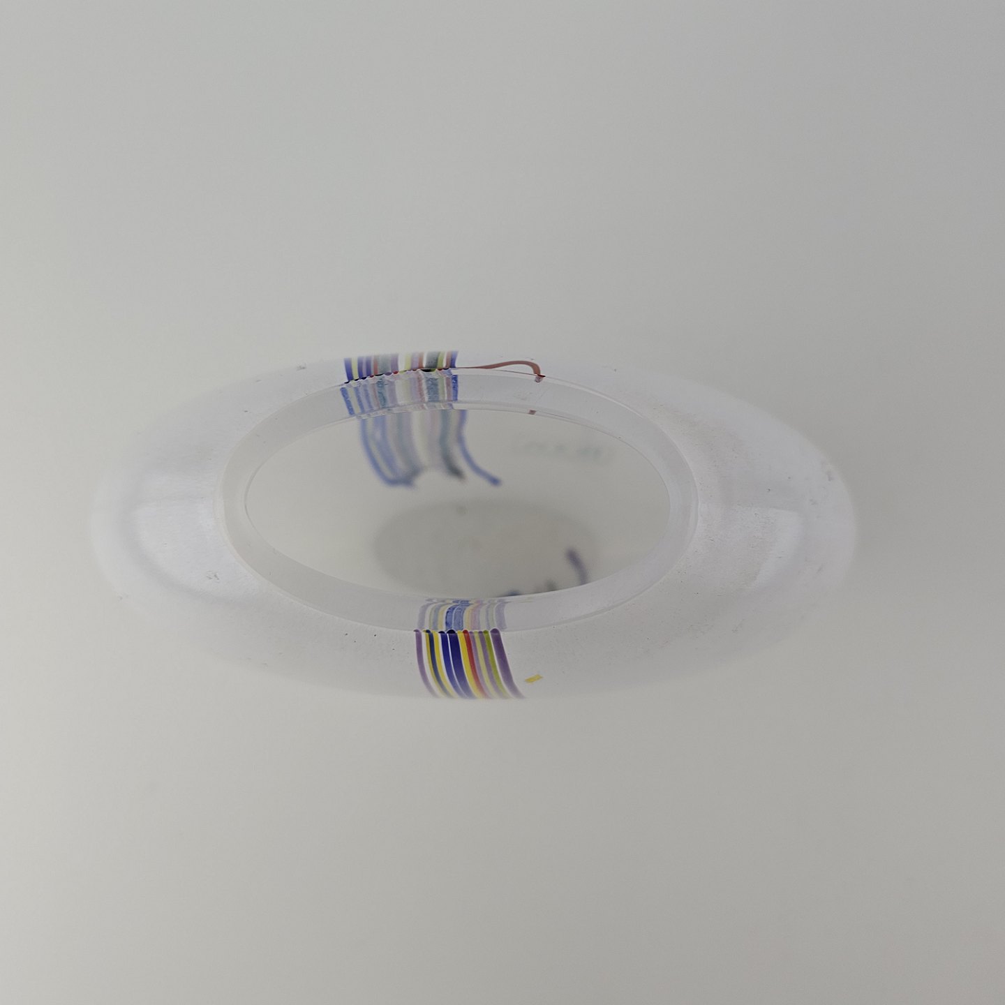 Rund vase i glas med dekoration af linjer og streger i flere farverNr. 48224