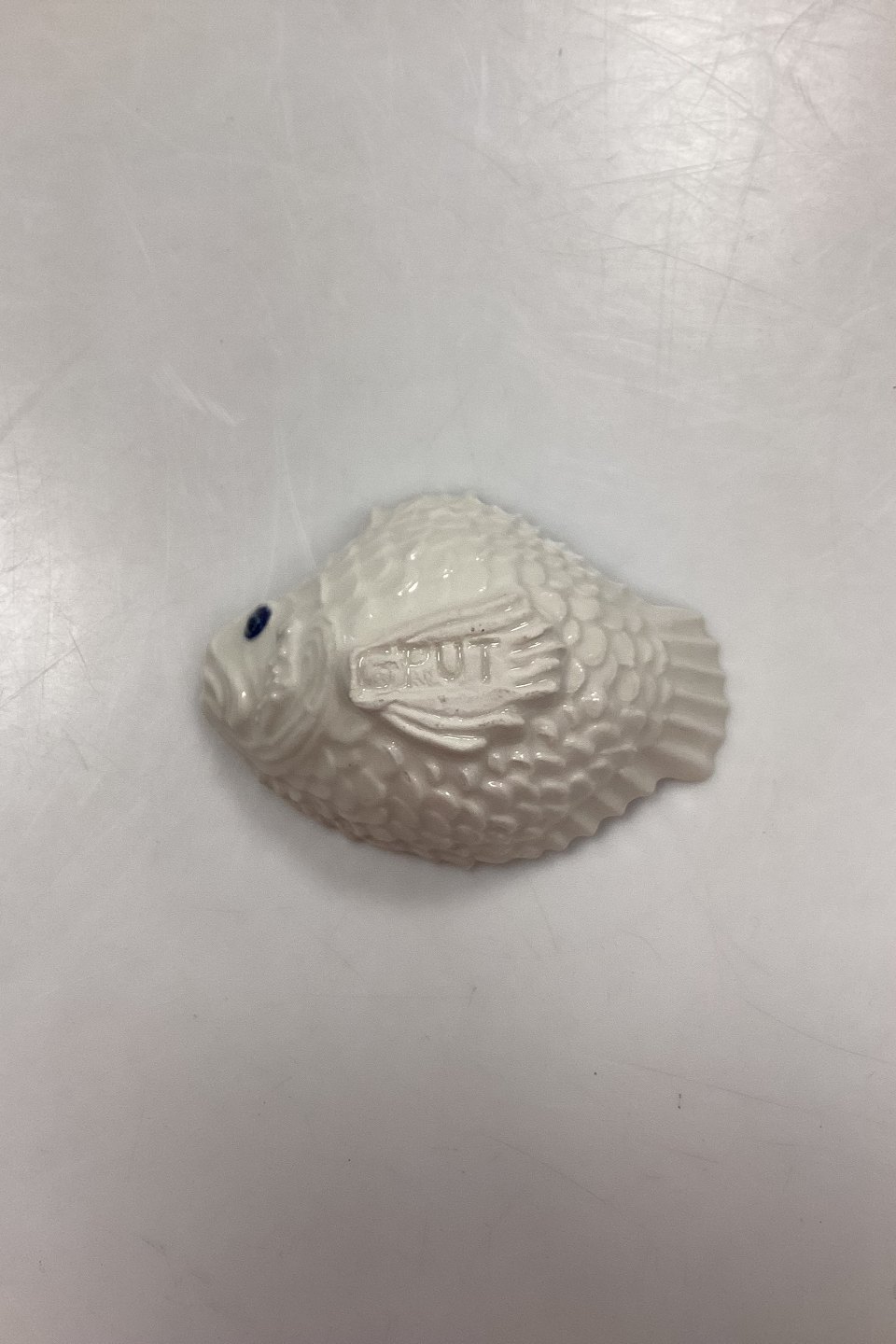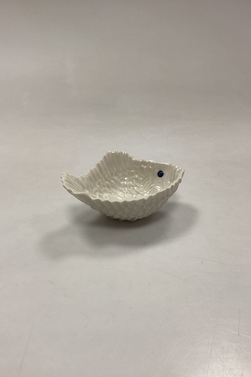 Royal Copenhagen Skål - Lille Fisk af Jeanne Grut. Hvidt stentøj med mørkeblå øjne. Signeret GRUT.Måler: L 12 cm x B 8,5 cm x H ca.4 cm