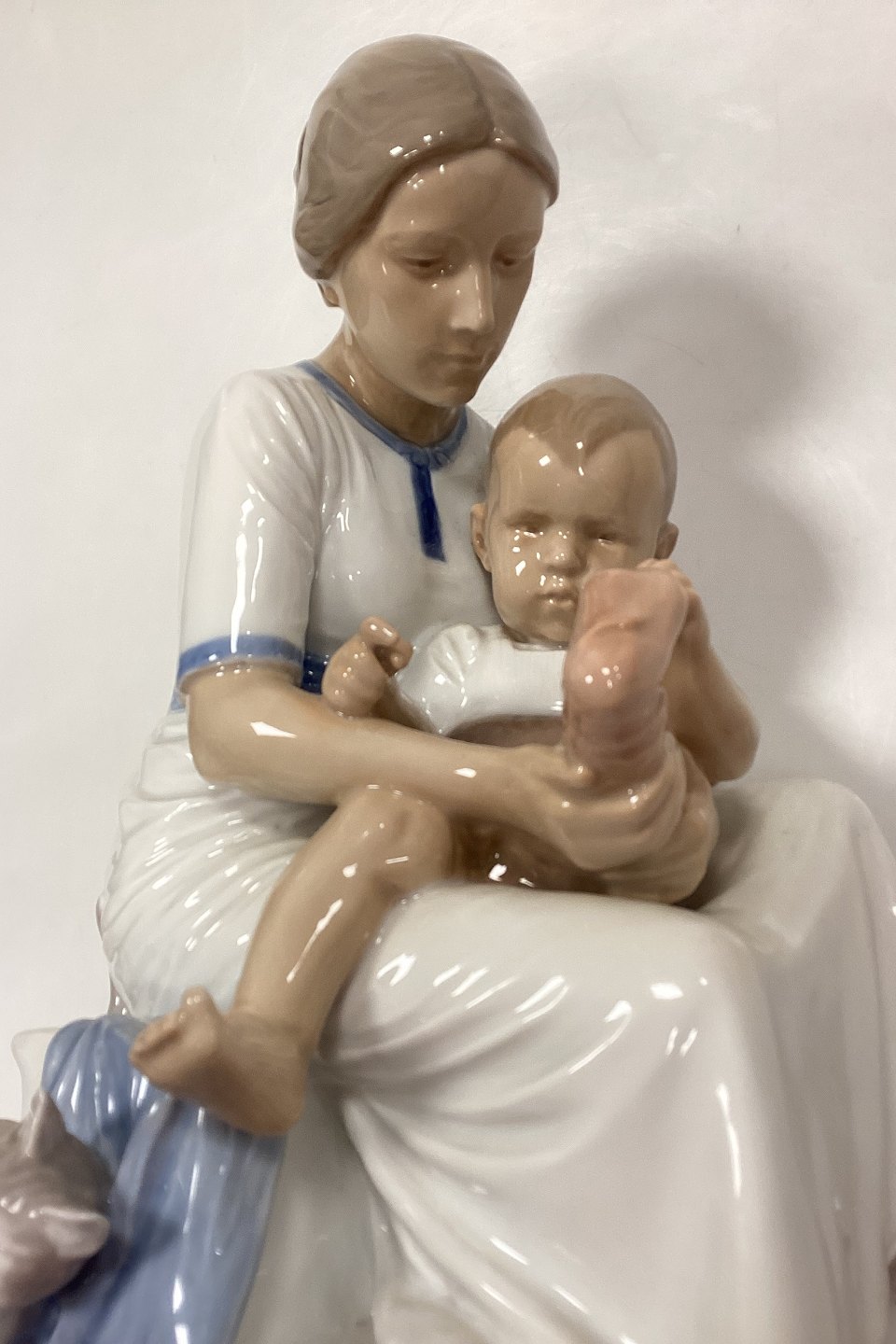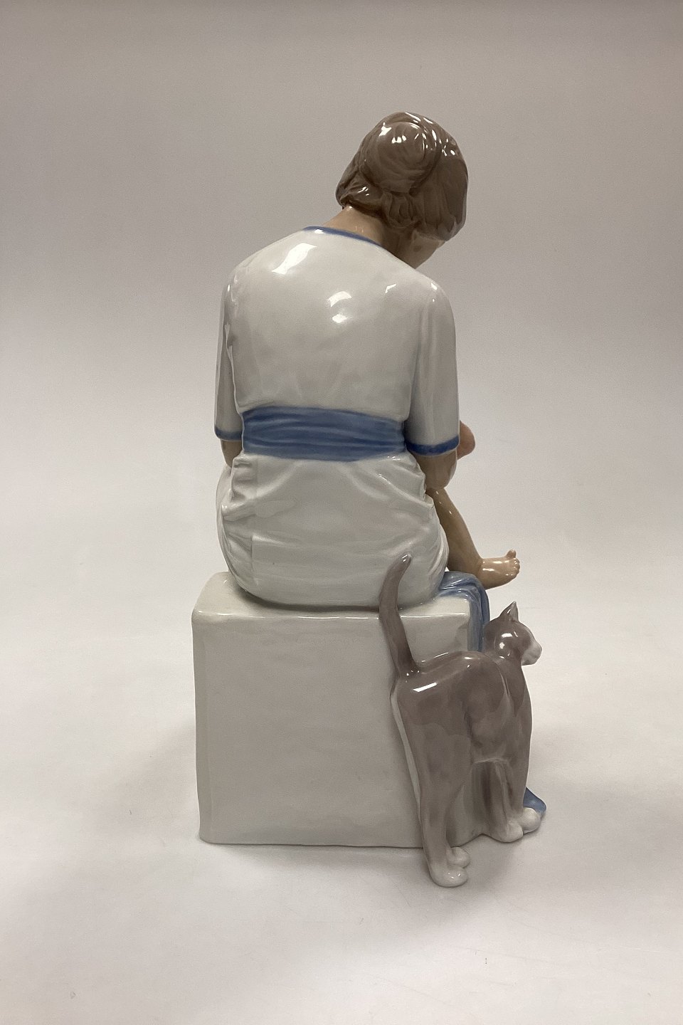 Bing og Grøndahl Figur - Mor og Barn med Kat No. 1829. 1. SorteringMåler 31 cm x 20 cm / 12,20 in. x 7,87 in.