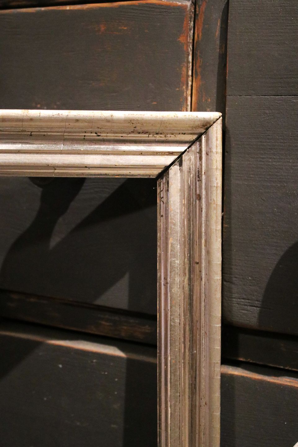 Antik 1800 tals træ ramme med original gammelsølvbelægning og en rigtig fin patina.