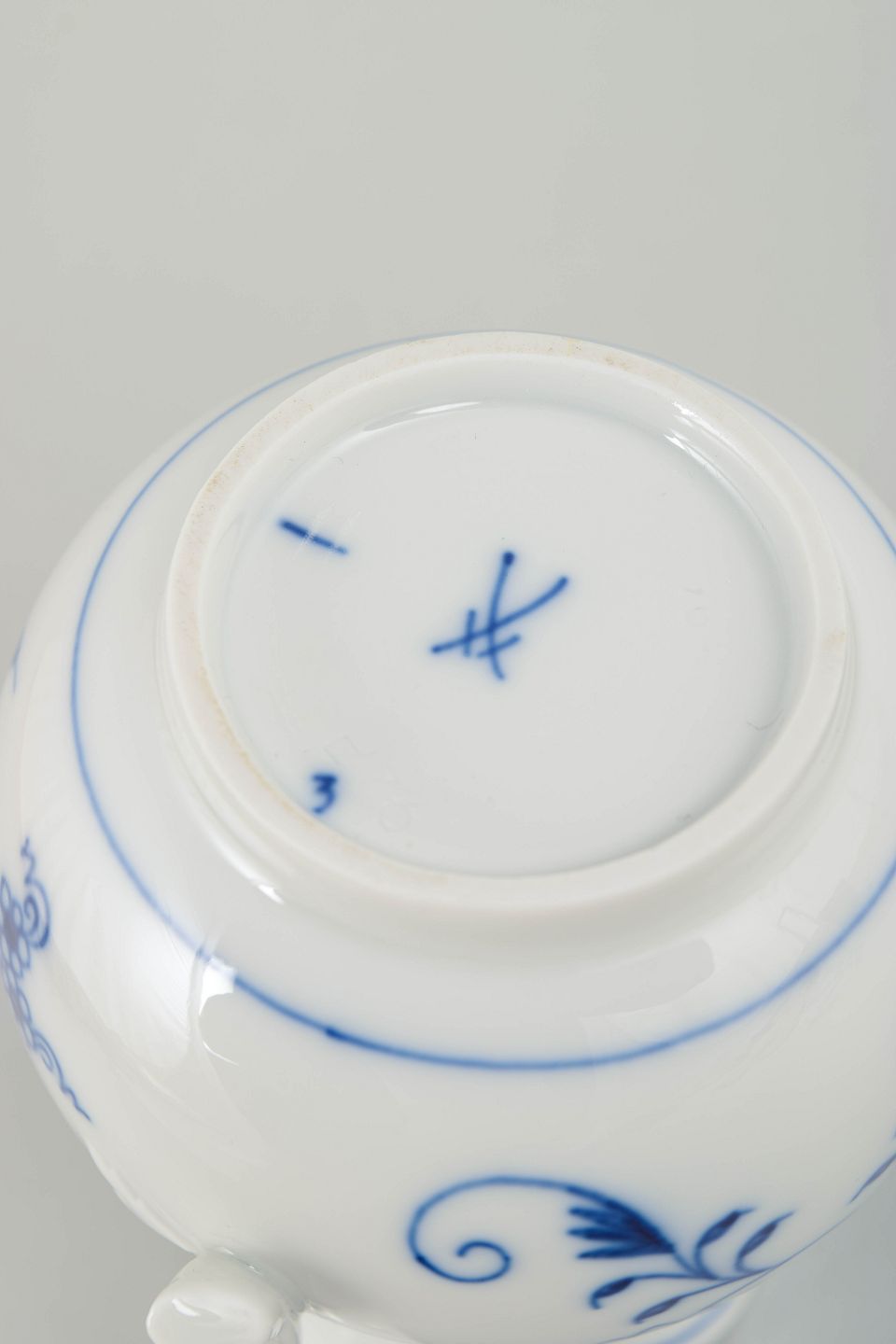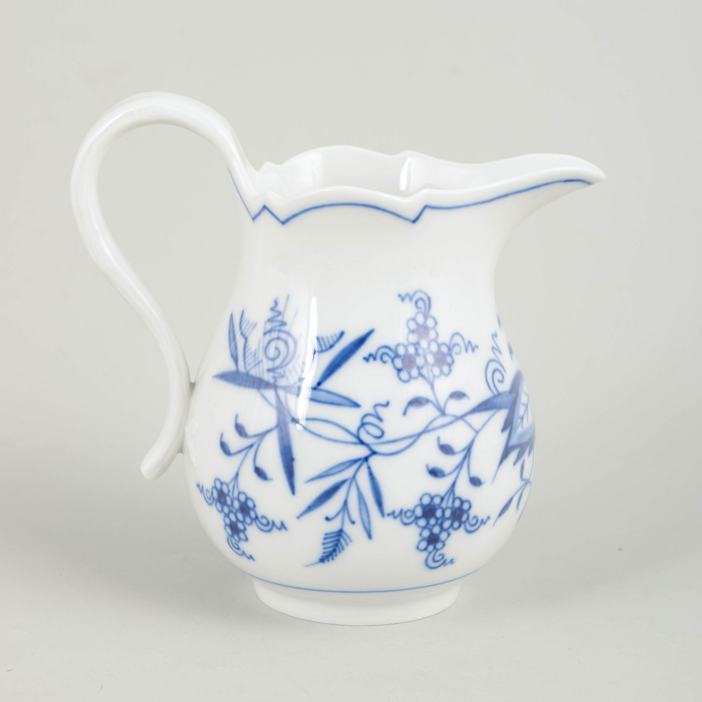 Meissens Blå Løg er et af de mest ikoniske europæiske porcelænsmønstre og kendt for sin klare underglasurblå dekoration og høje forarbejdningskvalitet. Flødekander indgik som faste dele af kaffe- og teservicer og bidrog til et harmonisk og elegant bordudtryk.