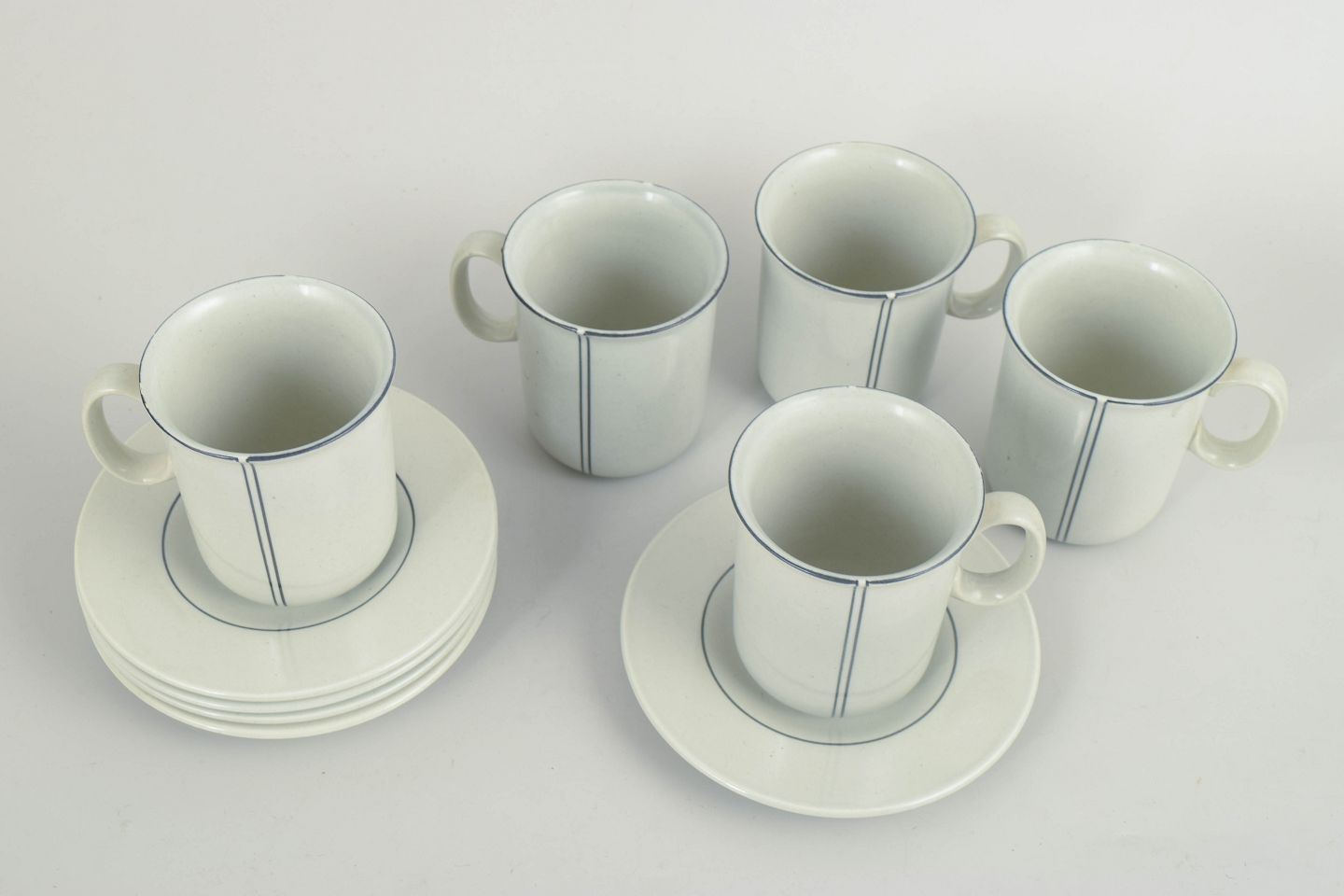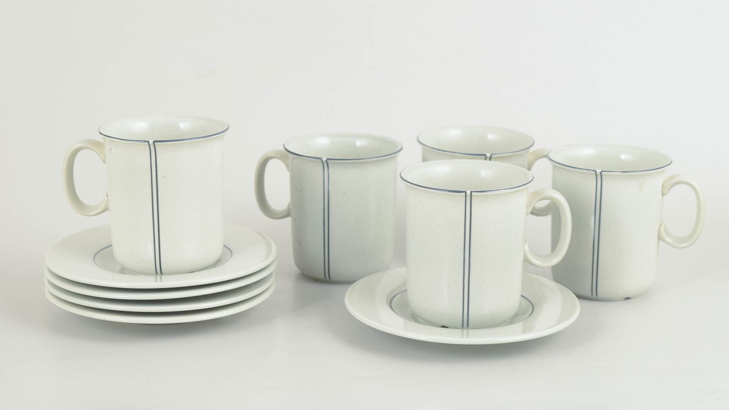 Stig Lindberg for Gustavsberg, "Demi" kaffekrus med tilhørende underkopper, sæt med fem.