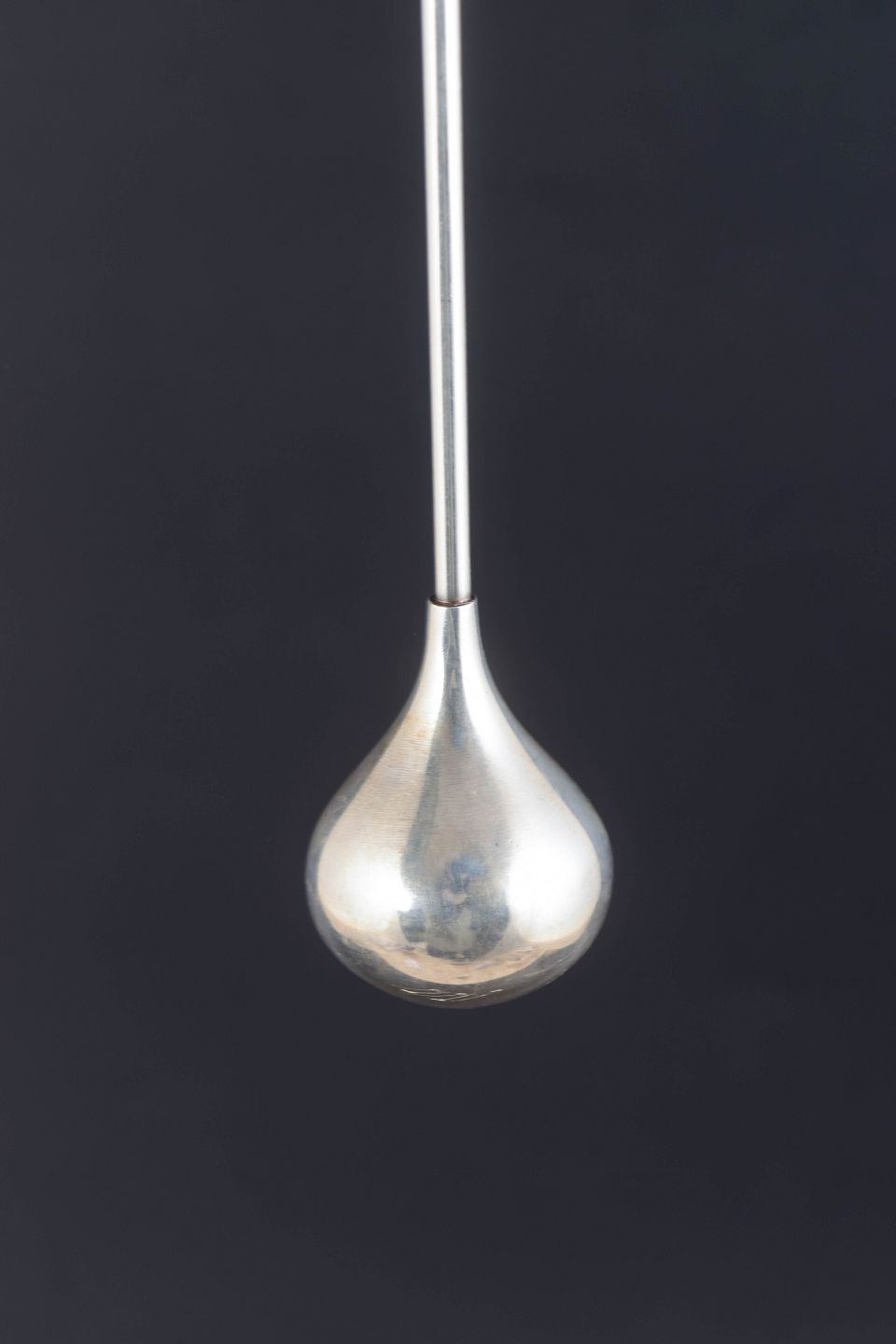 Sæt med seks slanke drinkkølere udført i forsølvet metal, udformet som stilrene stænger med afrundede ender. Stemplet “EPNS ABSA Denmark” på skaftet. Længde ca. 16 cm.