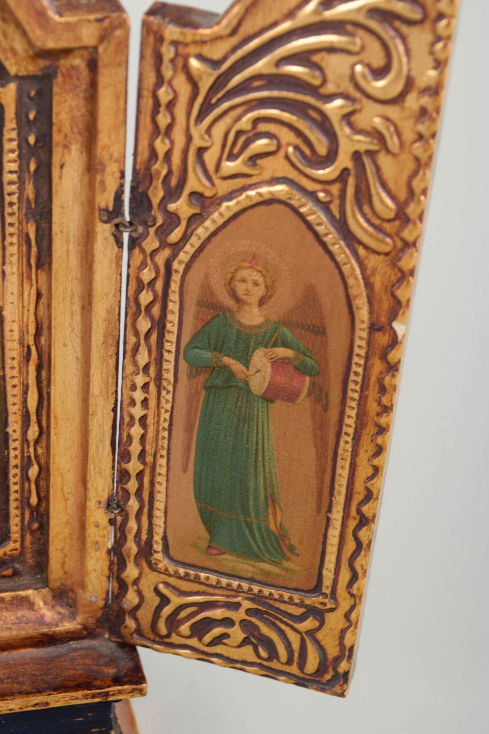 Russiske ortodokse ikoner fra 1800-tallet blev ofte udført som foldbare rejseikoner, hvor de beskyttende sidefløje gjorde dem egnede til både privat andagt og transport. Kombinationen af stærk symbolik, frontale figurer og dekorativ forgyldning er karakteristisk for traditionen og giver genstanden et tydeligt liturgisk og kulturhistorisk præg.